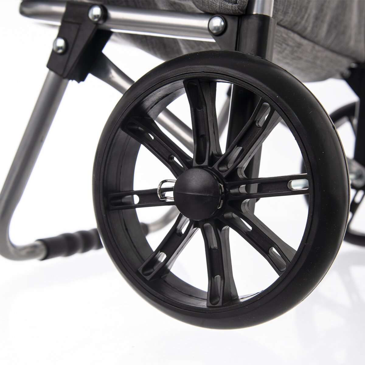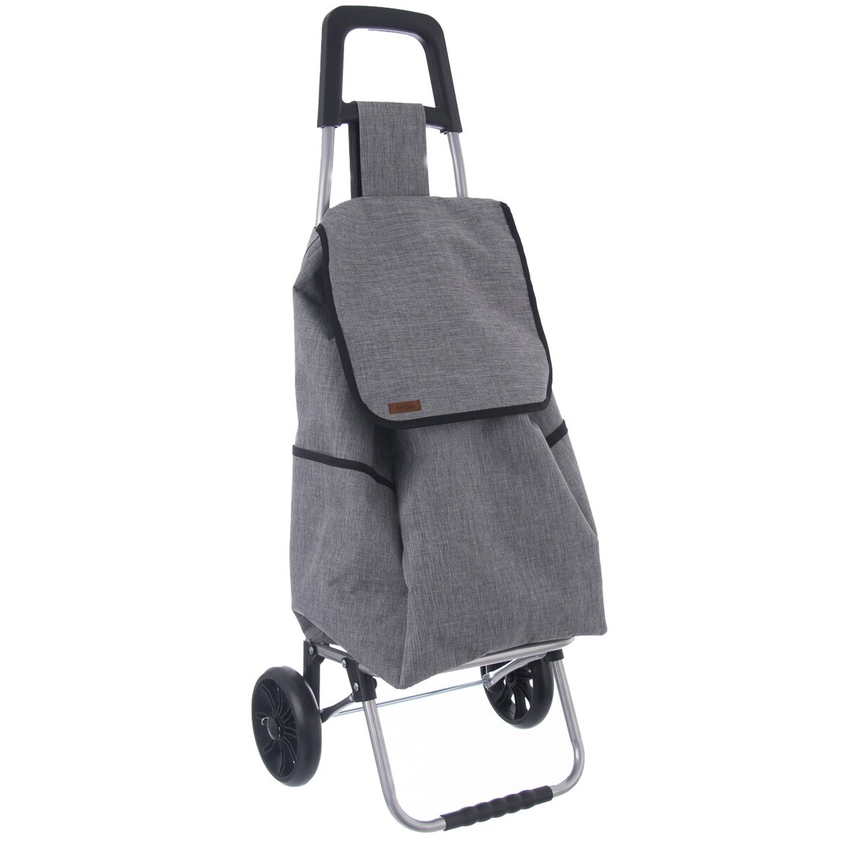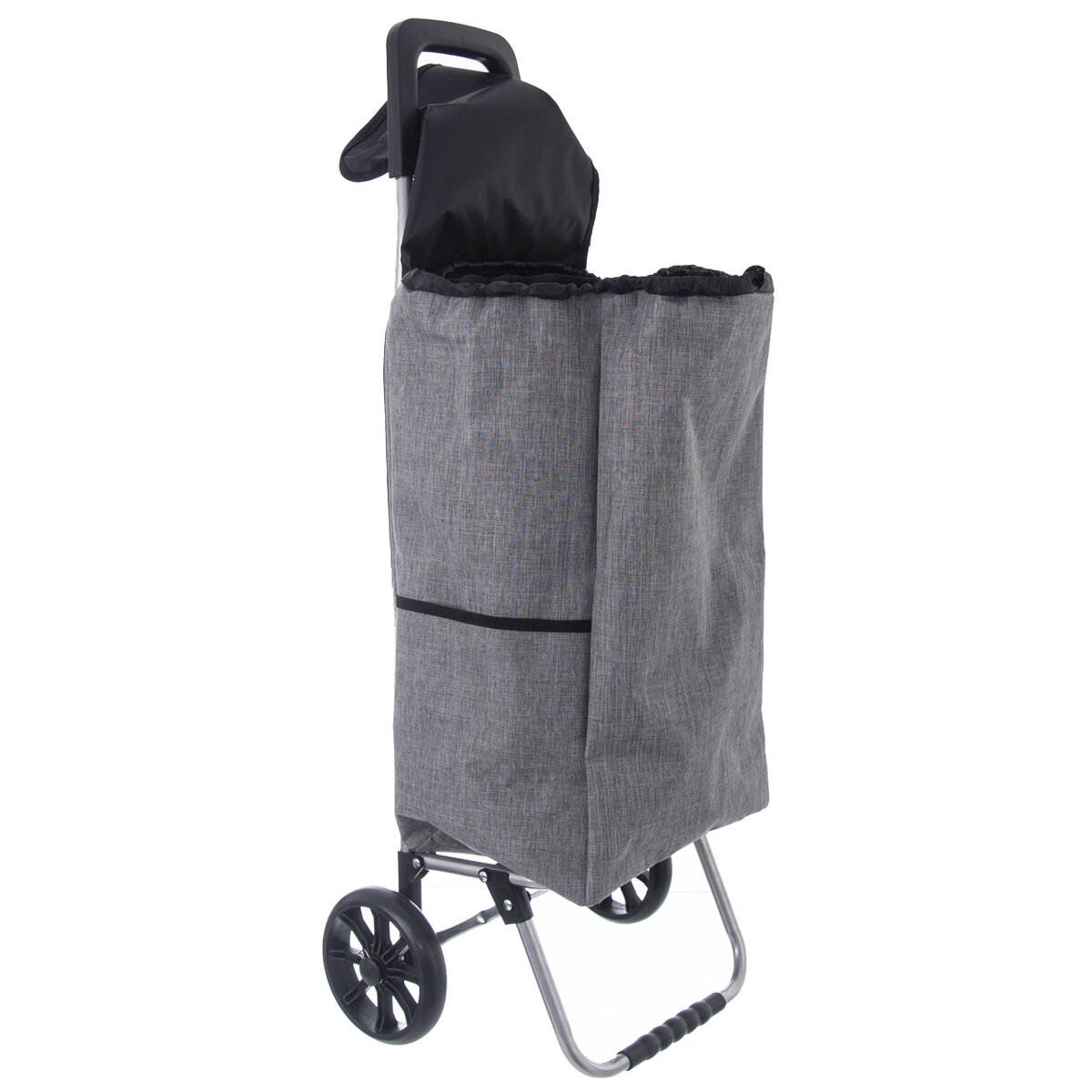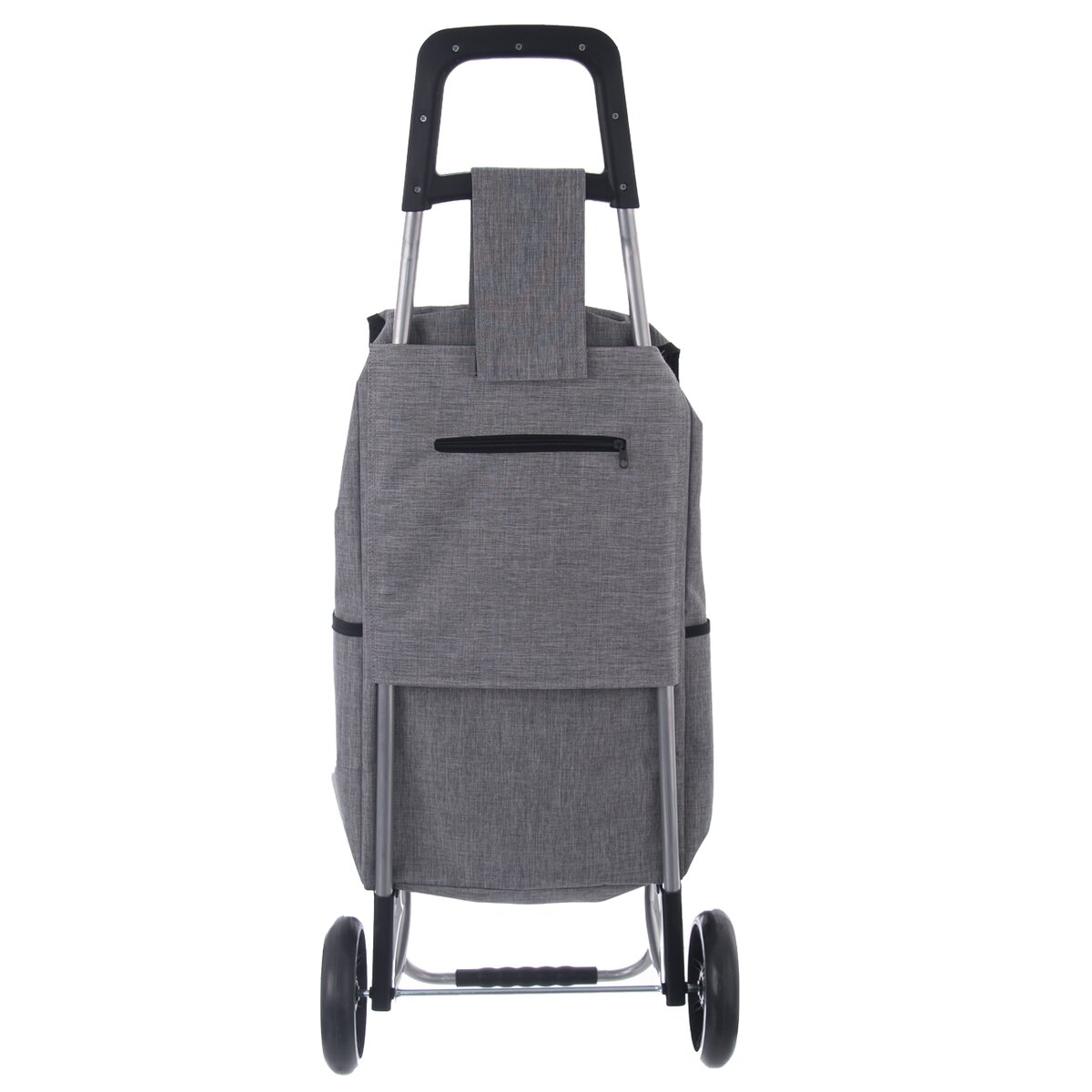 Kód produktu 731412Šedá nákupná taška na kolieskach s ľahkou kovovou konštrukciou, nosnosťou 30 kg a menším vreckom na zips.