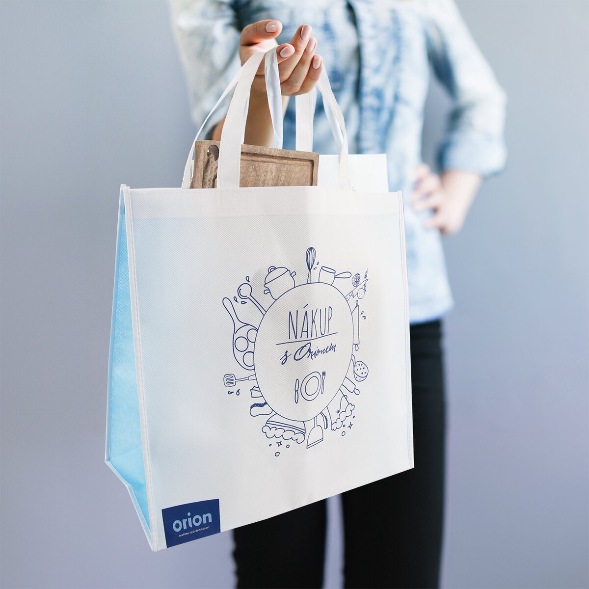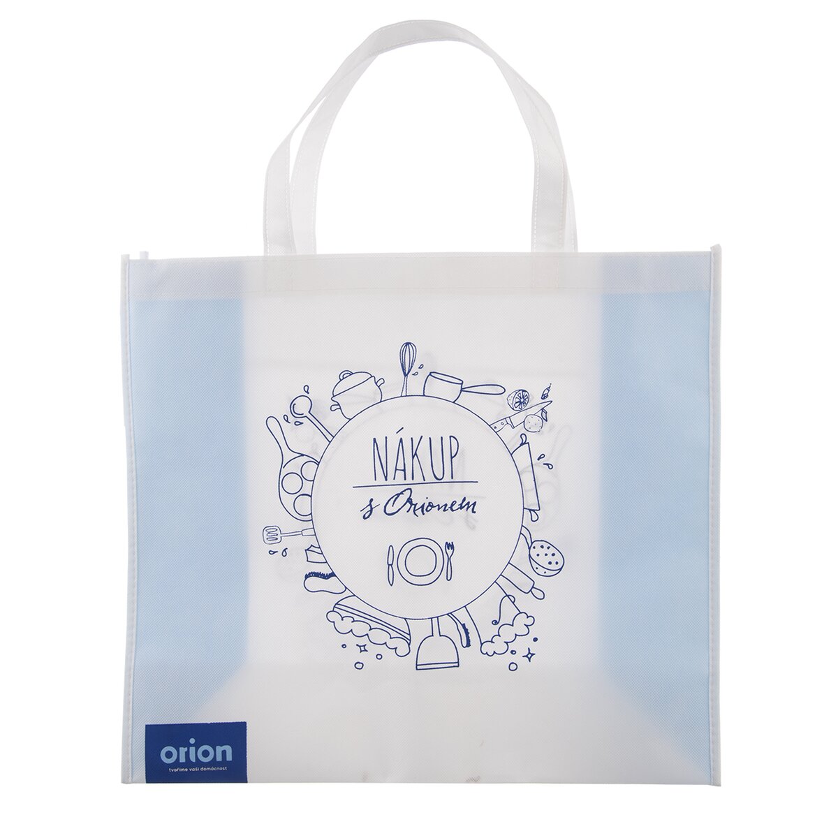 Namiesto igelitovej tašky je možné opakovane používať veľkú nákupnú Orion tašku, ktorá má rozmer 45,5x17,5x39 cm. Bez problému unesie až 8 kilogramový nákup, je vyrobená zo 100% polyesteru - netkanej textílie a je opatrená uchami.