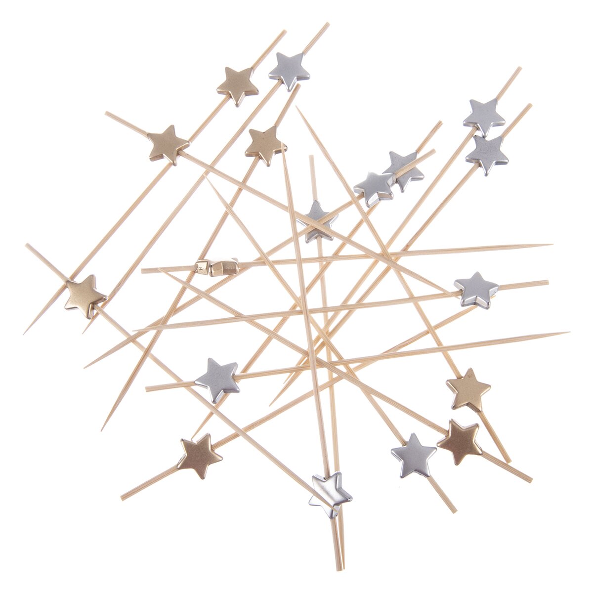 Kód produktu 151617Bambusové napichovátka s farebnou ozdobou v tvare HVIEZDY využijete pri servírovaní drobného slaného alebo sladkého pohostenia pri rôznych príležitostiach. Sú v sade 20 ks a majú dĺžku 12 cm.