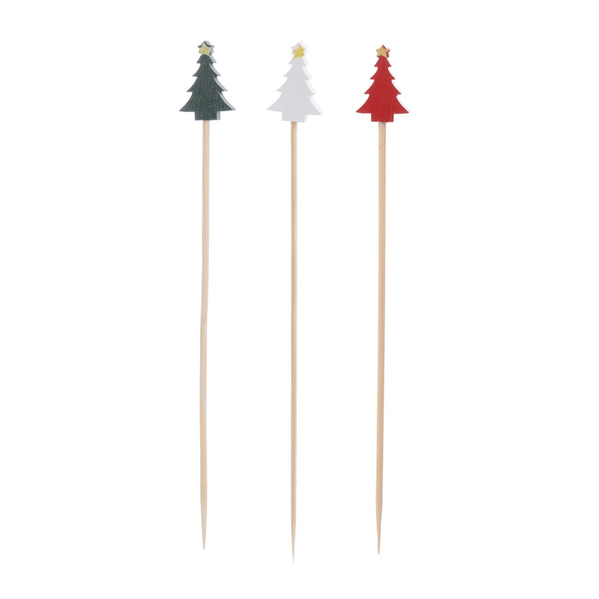 Kód produktu 151619Bambusové napichovátka s farebnou ozdobou v tvare stromčekov využijete pri servírovaní drobného slaného alebo sladkého pohostenia pri rôznych príležitostiach. V sade je 20 kusov a majú dĺžku 13 cm.