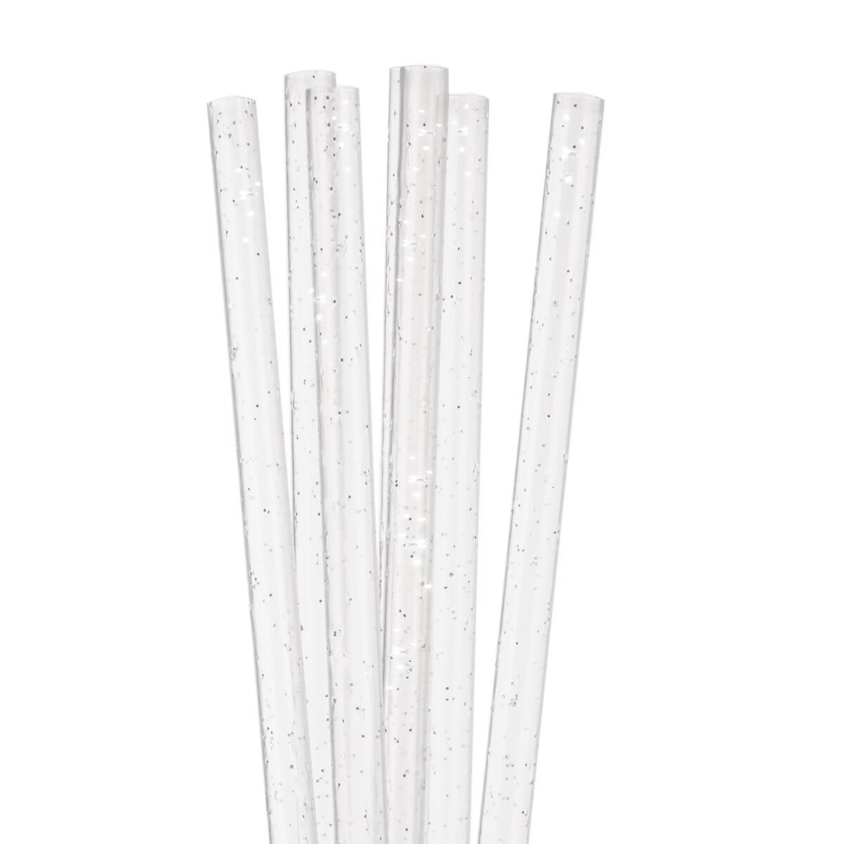 Kód produktu 151452Sada 50 kusov priehľadných plastových slamiek s trblietkami, s dĺžkou 22 cm, určených na opakované použitie.