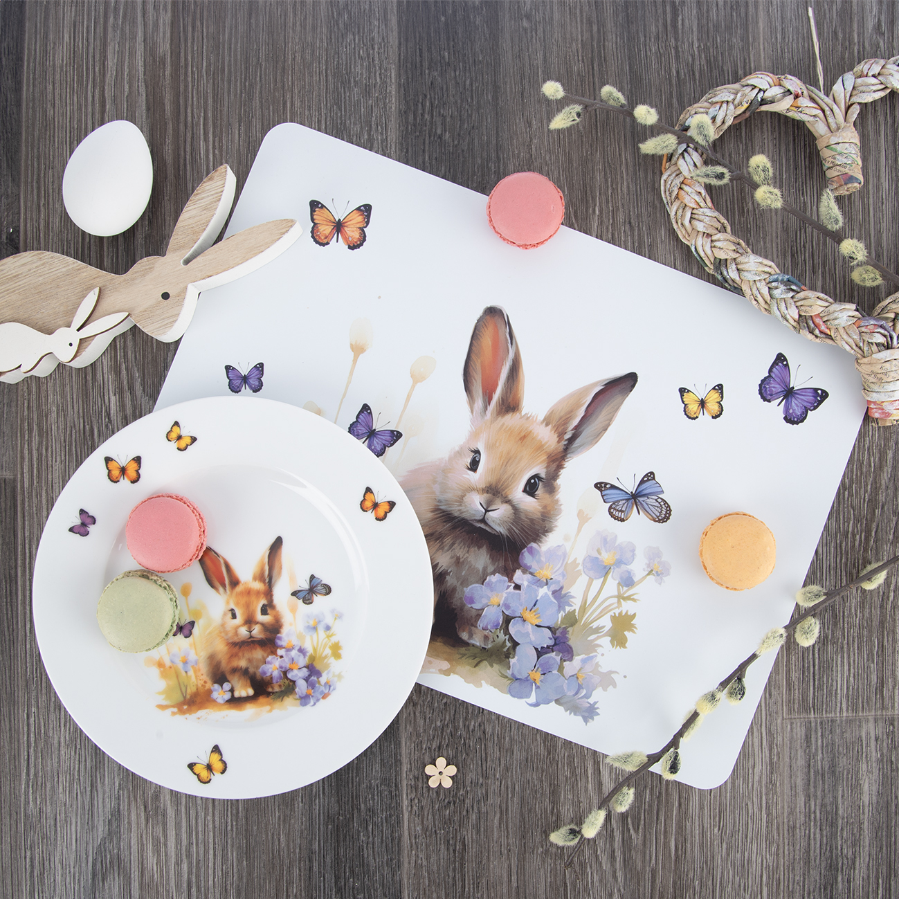 Pokiaľ hľadáte inšpiráciu pre jarné stolovanie, môžete zvoliť dezertné taniere s nežným motívom zajačika a poletujúcich motýlikov. Hrnčeky s jarnou potlačou dokonale doplnia pohodovú atmosféru pri raňajkách alebo popoludňajšom čaji.