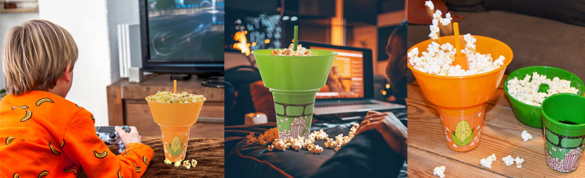 Blíži sa finále, začína obľúbený seriál alebo sa deti chystajú sledovať nový animák a premýšľate, ako štýlovo naservírovať pitie a niečo dobré? Jednoduché riešenie ponúka plastový pohár so slamkou, ktorý má na hornom leme nasadenú misku. Sú pripevnené pomocou uzáveru, takže stačí pootočiť a oba diely spojiť či rozpojiť.