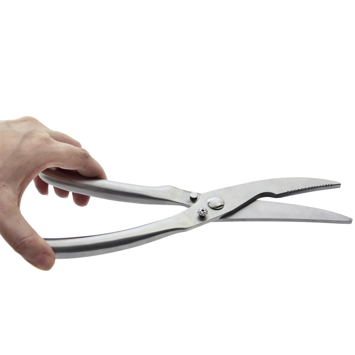 A aj keď nepečiete hydinu v celku, stačí ju surovú rozstrihať na menšie kusy, pečenie tak bude rýchlejšie. Nožnice na hydinu majú jemne zúbkované ostrie, aby rez "nekĺzal" a bol presný. Ergonomicky tvarovaná rukoväť aj umožní pevne a silne stlačiť a prestrihnúť menšie kosti, šľachy a chrupavky. Špeciálny výrez pomáha s rozdrvením kostí. Porciovanie hydiny s nimi pôjde ľahko.