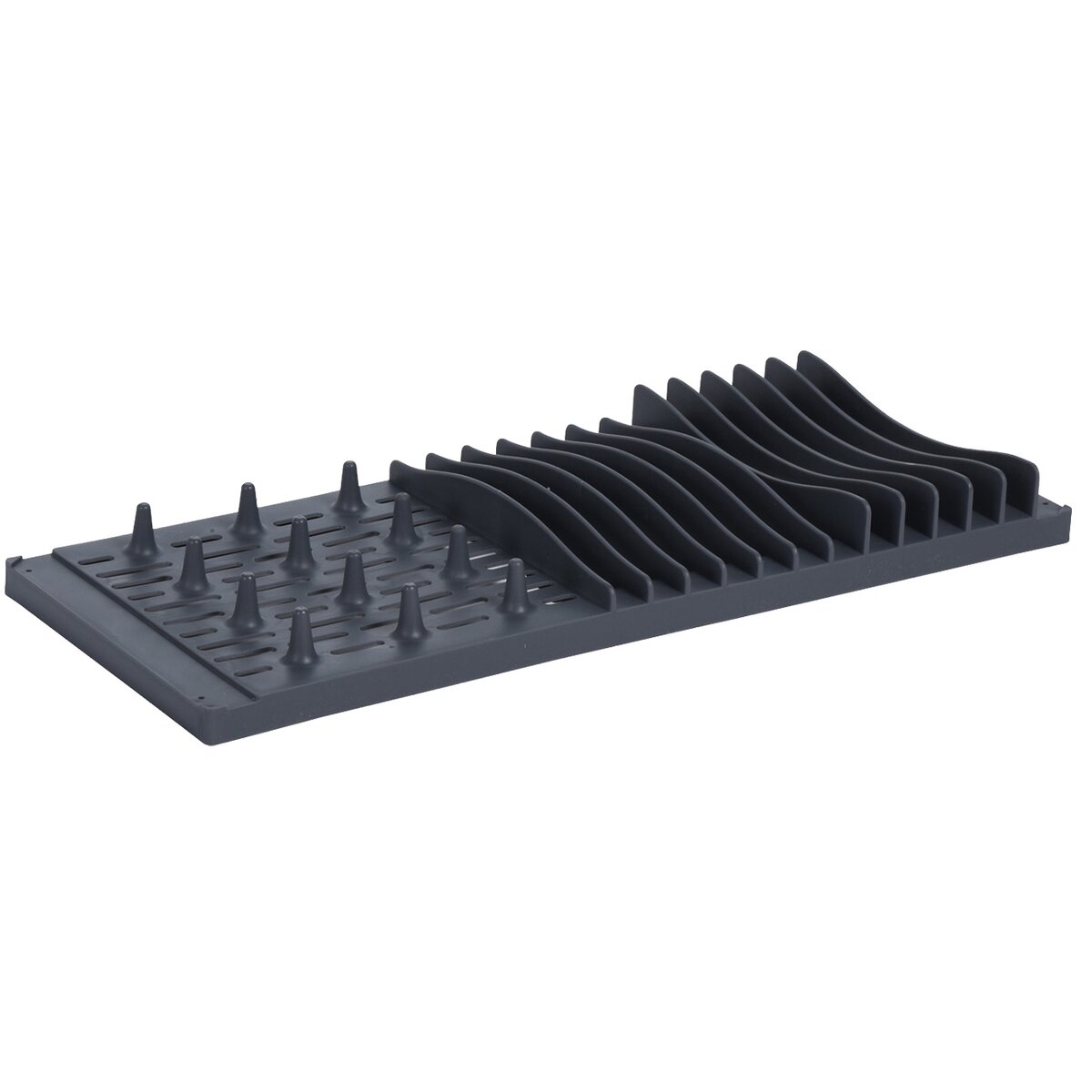Odkvapkávač na riad. Veľmi skladný a dobre saje vodu. Materiál: plast, 100% polyester. Možno prať na 60 ° C, nepoužívať aviváž ani bieliace prostriedky. Rozmery: 48x38 cm, plastový diel 40x16x4 cm.