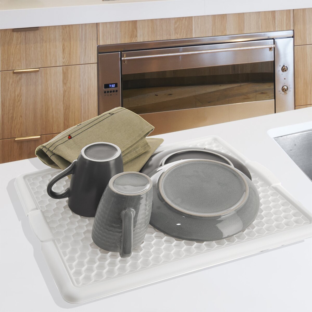 Viac informáciíPlastová odkvapkávacia podložka, na ktorú môžete odkladať umytý riad. Biele alebo bielo-čierne prevedenie zapadne do interiéru takmer každej kuchyne. Využijete ho pri bežnom odkvapkávaní riadu, ale aj na poháre na rodinnej oslave alebo akcii s priateľmi.
