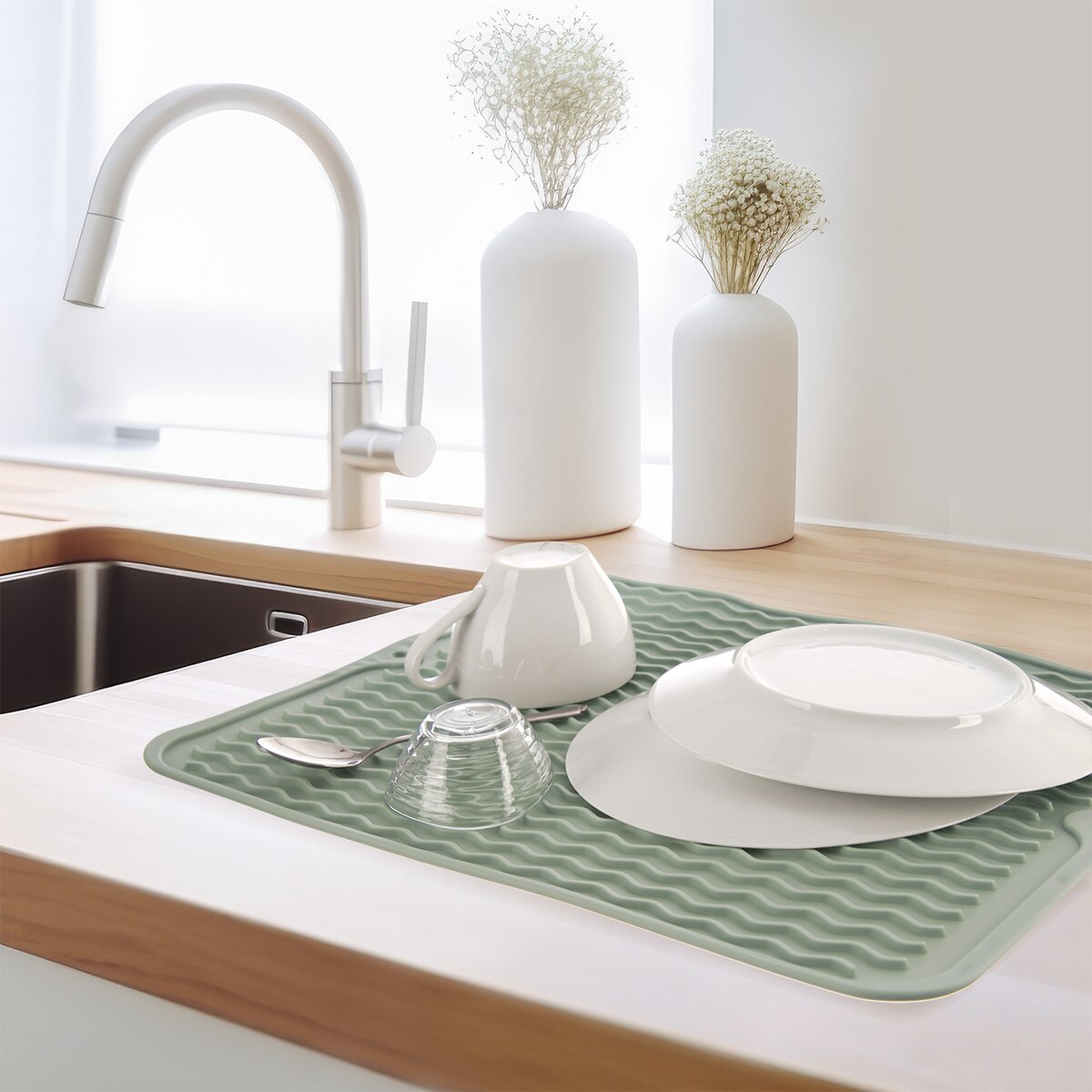 Vďaka mäkkému materiálu a vystúpenej štruktúre nedôjde k poškodeniu chúlostivejšieho riadu, napr. skla, keramiky a porcelánu. Aj keď nemáte už v umývačke dostatok miesta alebo potrebujete narýchlo umyť pár kúskov riadu, potom je tento zelený odkvapkávač ideálnym pomocníkom.
