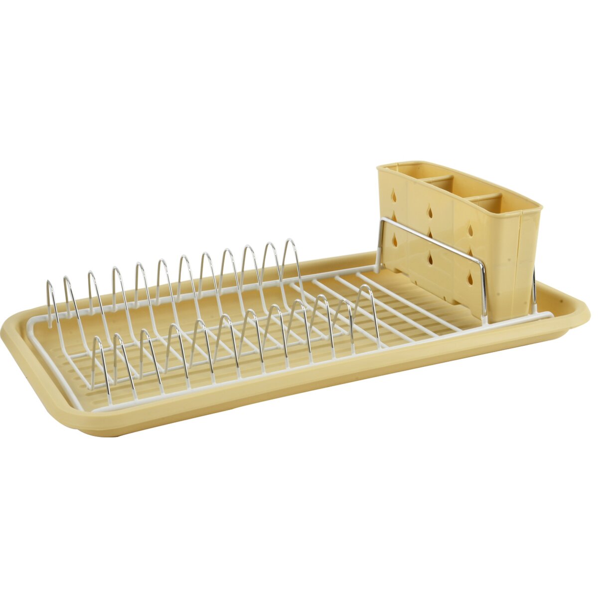 Kód produktu 150681Béžový plastový odkvapkávač na riad s drôtenou konštrukciou, s rozmermi 43×23×12 cm.