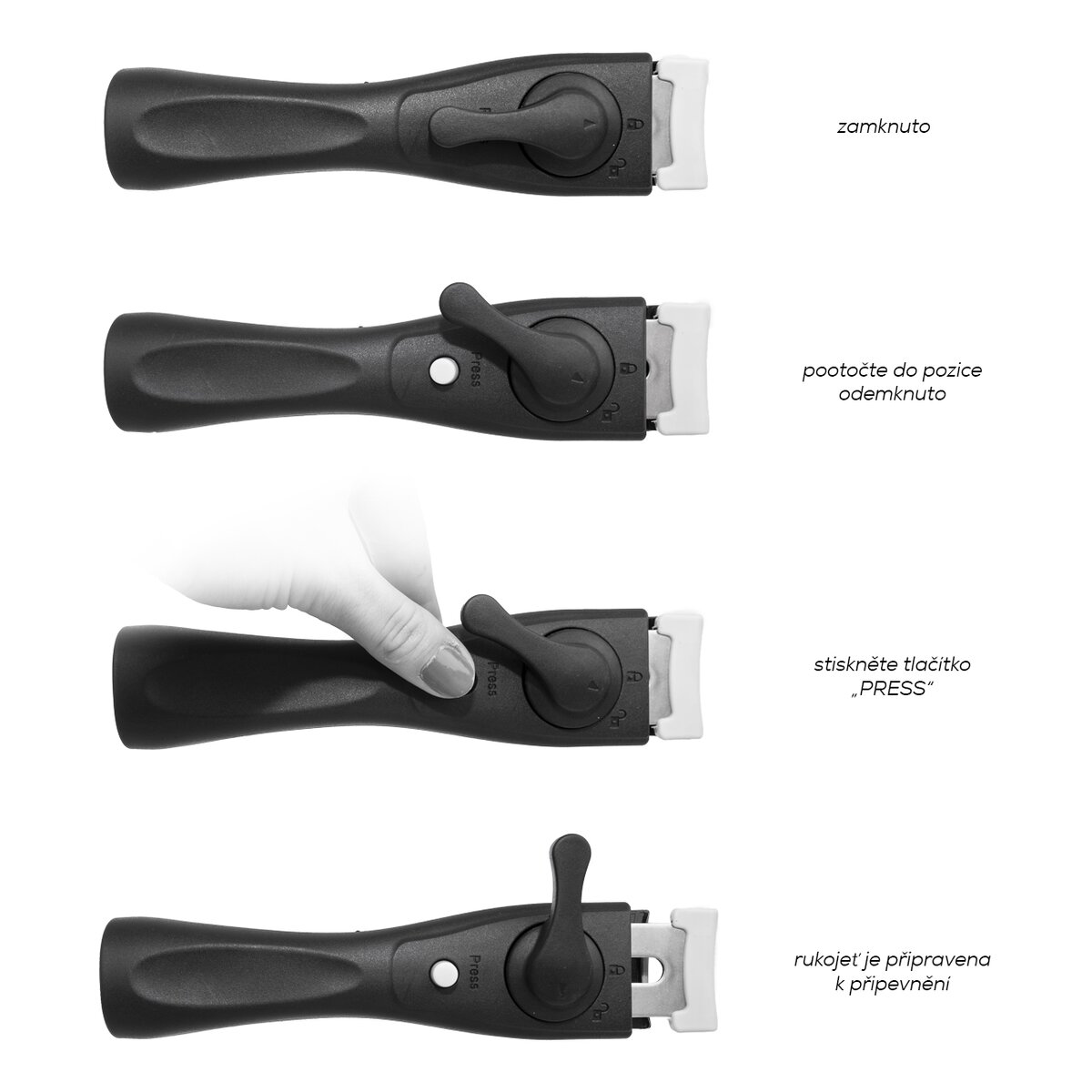 Vďaka možnosti rukoväť jednoduchým pohybom odopnúť ušetríte miesto nielen v zásuvke, ale hlavne môžete pokrm zo sporáka vložiť rovno do rúry, odopnúť rukoväť a dopiecť.
