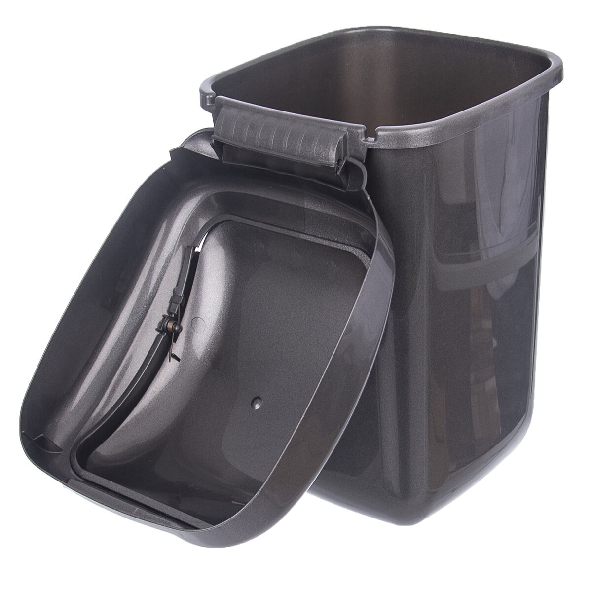 Kód produktu 731350Čierny plastový kôš na odpadky s objemom 50 l s mechanizmom otvárania kolíska.
