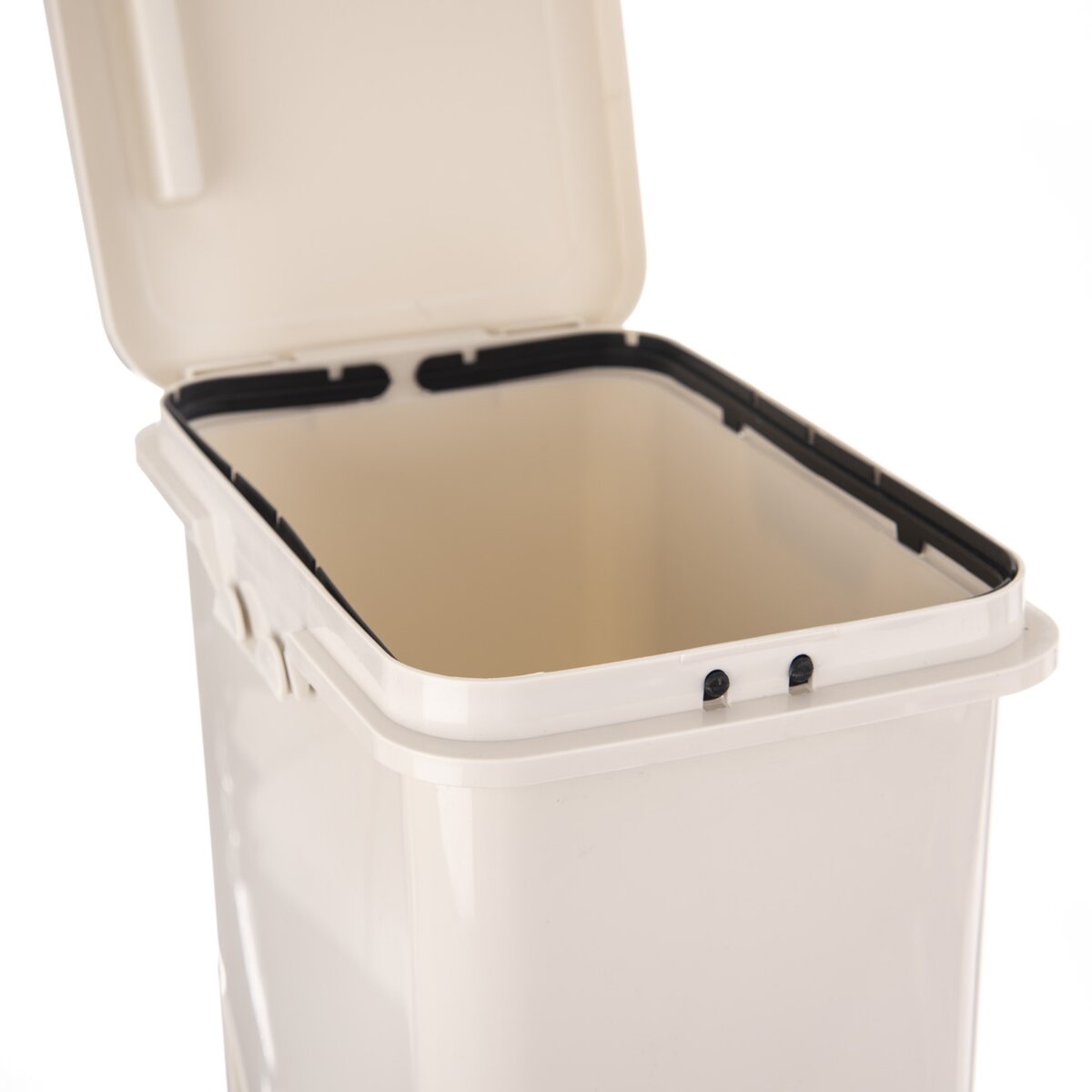 K otvoreniu jeho dolnej časti sa veko vyklápa smerom dopredu, pri hornej časti sa veko zdvíha klasicky ručne nahor. Obe nádoby majú vnútorné ucho pre zaistenie vrecka.