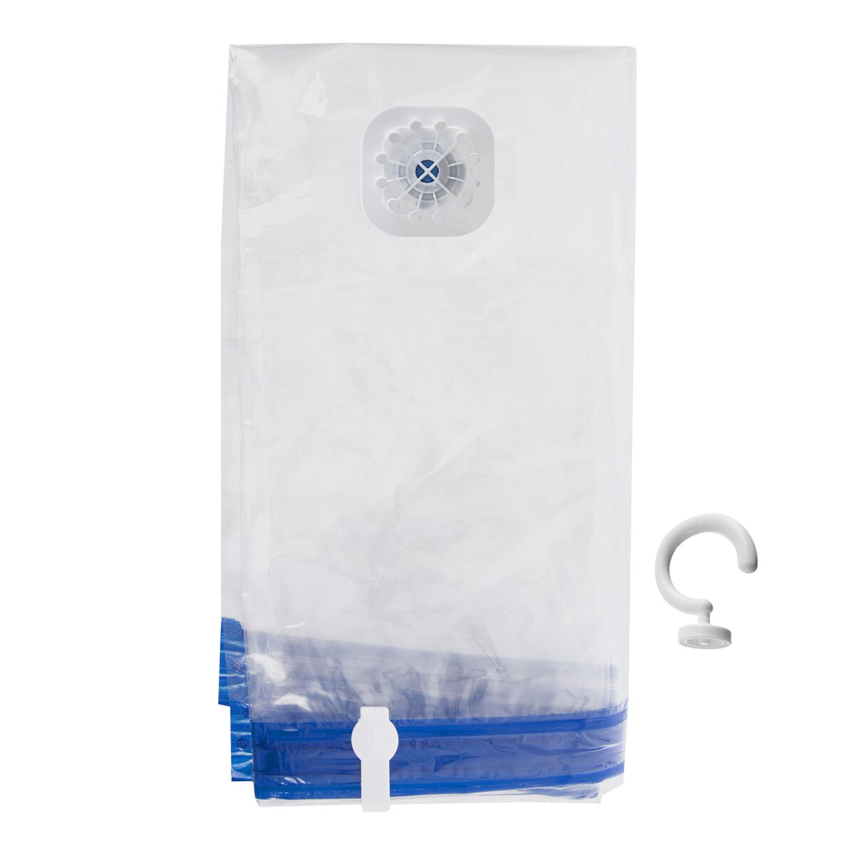 Vaky môžete využiť aj ako obyčajný obal na oblečenie bez odsatia vzduchu. Tento typ je vybavený odnímateľným otočným háčikom, takže vak s oblečením zavesíte jednoducho do skrine. Pokiaľ háčik odskrutkujete, vak zostáva bez vzduchu a môžete ho uložiť pod posteľ, do nástavca skrine... Dvojitý zips zaručuje lepšiu pevnosť a spoľahlivosť systému odsávania vzduchu.