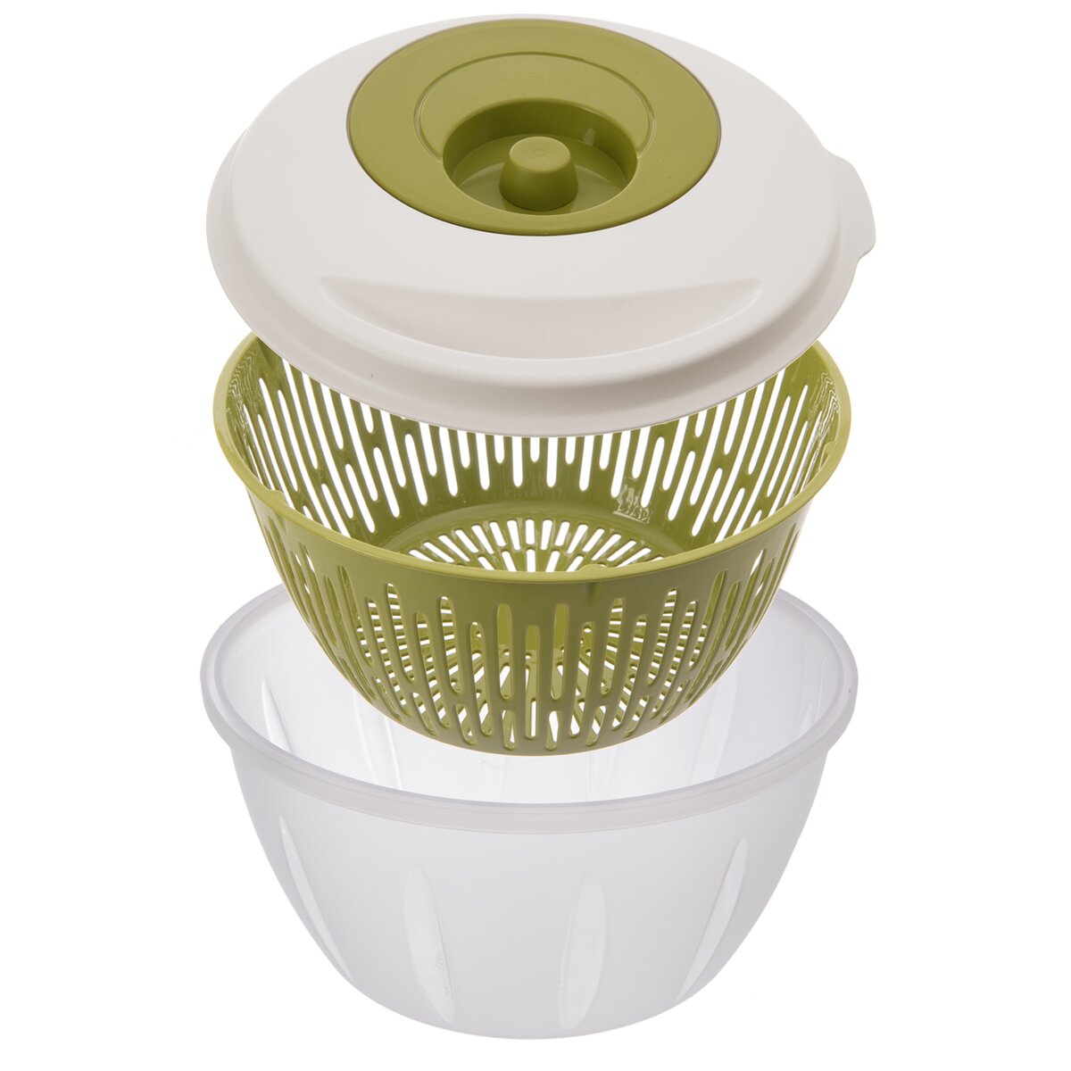 Šalát, ovocie alebo zeleninu umyjete, ak ich vložíte do odstredivky z odolného plastu. Počas chvíle máte perfektne pripravené suroviny na ďalšie spracovanie do šalátov, múčnikov a pod. Jednoduché a rýchle čistenie vďaka vyberateľnému košu. Sitko nasadené na stredový tŕň misy spoločne s mechanizmom vo veku misky zaistí ľahké, ale dokonalé odstreďovanie vody z umytej zeleniny, stačí jednou rukou veko za priehlbinu pridržať, druhou rukou uchopiť pohyblivé držadlo v zelenej výseči.