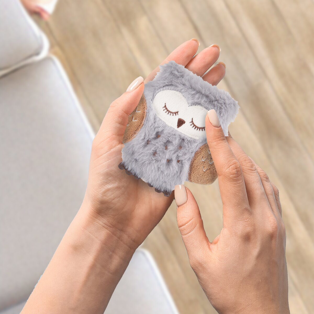 Kód produktu 830649Ohrievací vankúšik v dekoratívnom plyšovom obale s motívom SOVY slúži na zahriatie rúk, rukavíc, topánok alebo vreciek v chladnom období. Vhodné pre lyžiarov, turistov atď. Pohodlne sa zmestí do vrecka. Plyšový obal je snímateľný, môžete ho ľahko vyprať na 30 °C. Ohrievač má v sebe tekutý gél a aktivačný pliešok. Pre aktiváciu stačí zlomiť pliešok vo vnútri ohrievača, tým sa vyvolá chemická reakcia, kedy gél začne kryštalizovať a hreje. Možno používať opakovane. Na obnovenie funkcie stačí po vychladnutí pár minút povariť vnútornú časť vankúšika (ohrievač) vo vriacej vode, kým sa nerozpustia kryštály gélu. Následne môžete znova použiť. Doba držania tepla je cca 15 až 30 minút v závislosti od okolitej teploty. Možno využiť aj ako studený obklad nachladením v chladničke alebo v mrazničke. Materiál: 100% polyester, PVC, acetát sodný (výplň), voda, kov. Rozmery: 11,5x12 cm. Upozornenie: Použitie iba pod priamym dozorom dospelej osoby. Toto nie je hračka. Výrobok nie je určený pre deti k hre. Uchovávajte mimo dosahu malých detí. Neprepichujte, ak je vankúšik poškodený, vyhoďte ho. Ak sa dostane tekutina do kontaktu s pokožkou/očami, miesto umyte pod tečúcou vodou. Pri pužití tekutiny vypite veľa vody a vyhľadajte lekára.
