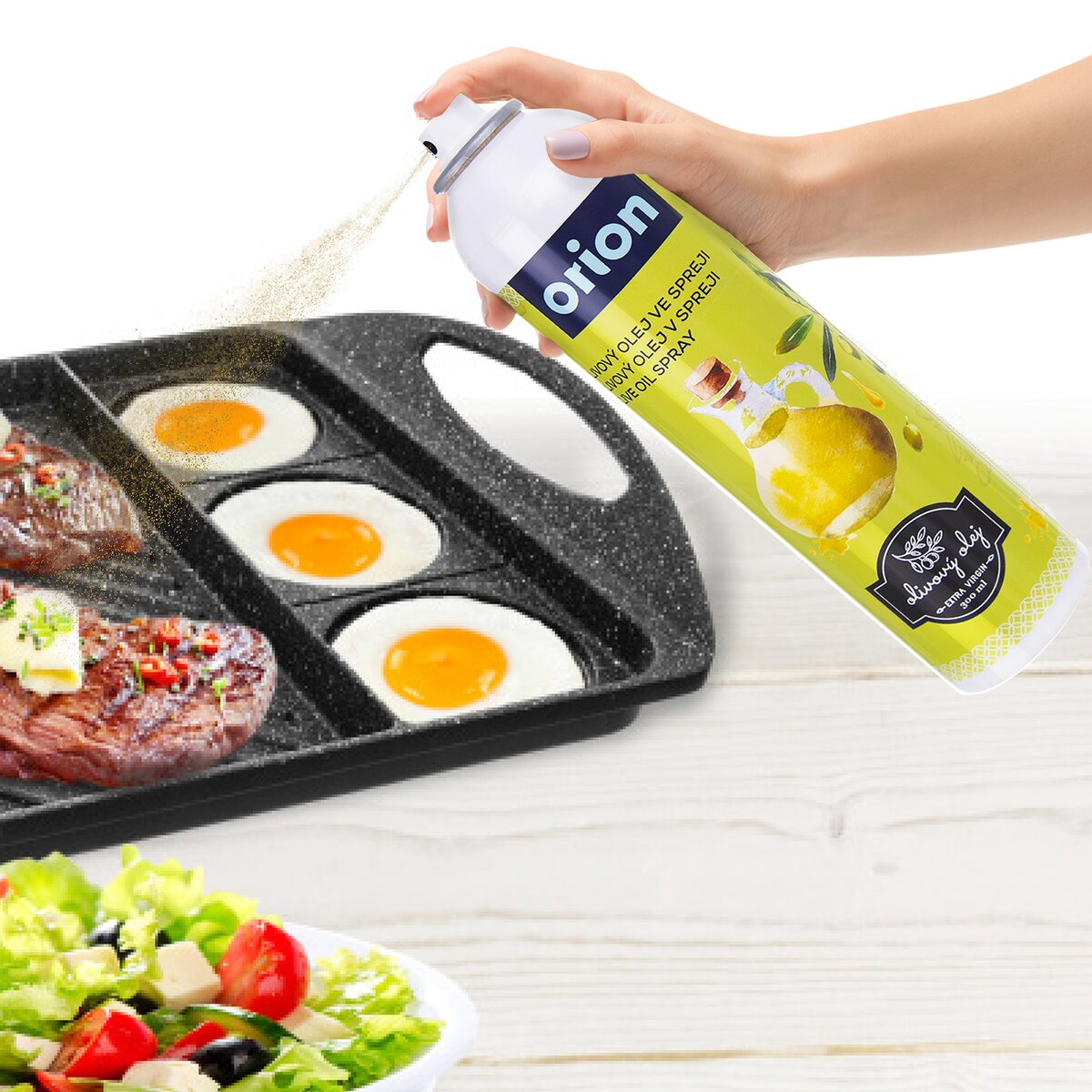 Kód produktu 831908100% olivový olej ve spreji - extra virgin (výberová akosť olivového oleja získaného piamo z olív iba mechanickým spracovaním). Olej jednoducho nastriekajte na zeleninové šaláty nebo iné pokrmy, grily, panvice. Objem: 300 ml.