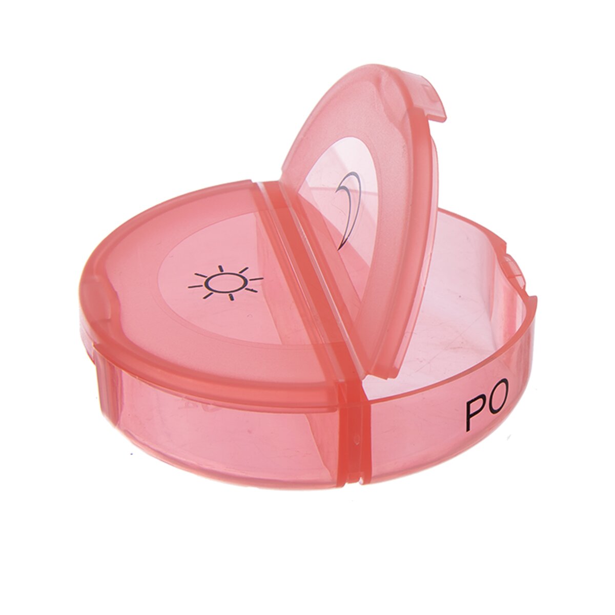 Organizér s výklopným vekom je vyrobený z plastu PP, jednotlivá krabička na každý deň má priemer 6 cm, v. 1,7 cm, jednotlivá časť 5,7x2,5x1,5 cm.