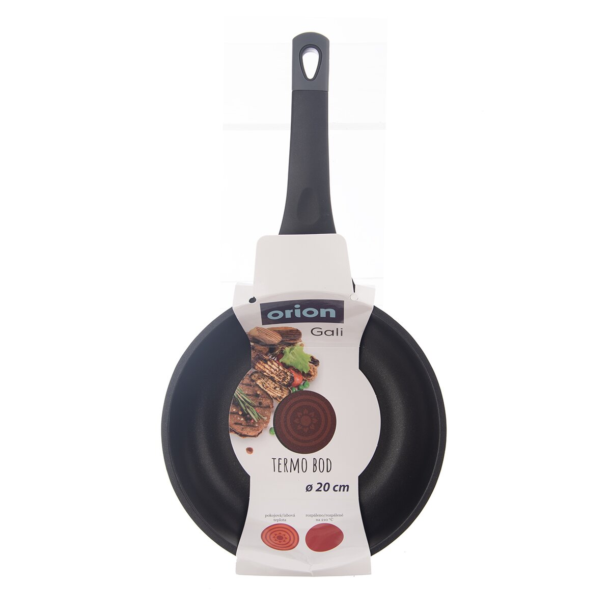 - panvicu je možné zavesiť za otvor na konci rukoväte, potiahnuté silikónom v príjemnom šedom odtieni