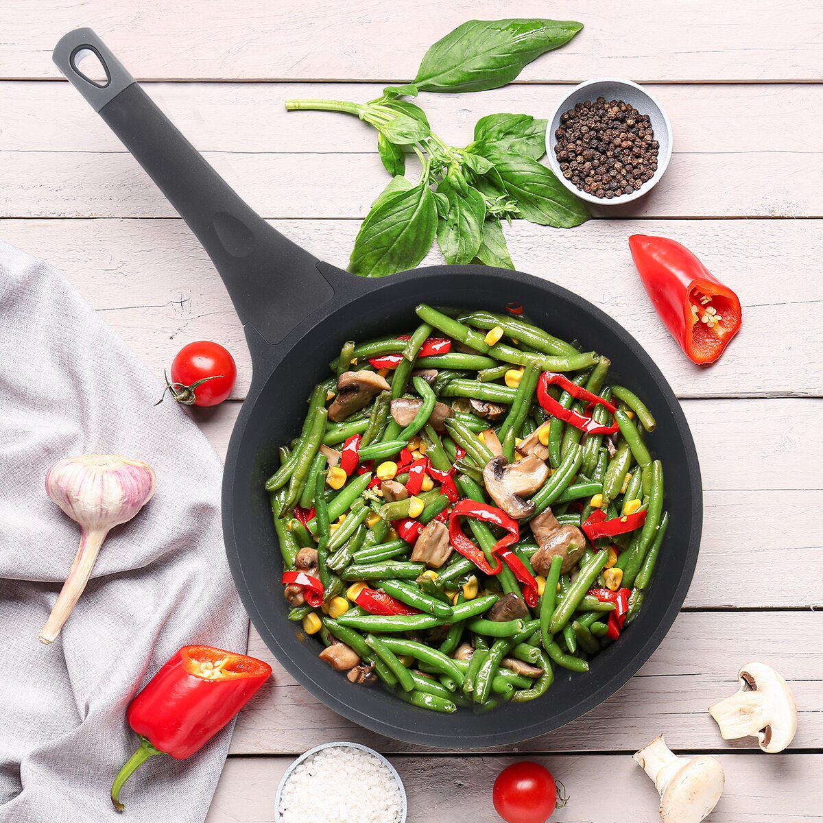 - panvicu je možné zavesiť za otvor na konci rukoväte, potiahnuté silikónom v príjemnom šedom odtieni