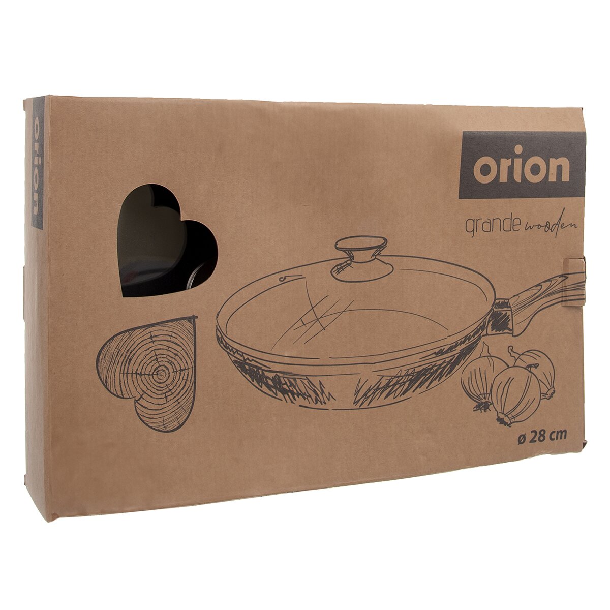 Príjemná syntetická rukoväť v dekore dreva vytvára farebný kontrast s tmavým telom panvice. Sklenená pokrievka s otvorom pre únik prebytočnej pary zrýchli prípravu pokrmov a zaistí vizuálnu kontrolu nad stavom pripravovaného pokrmu.