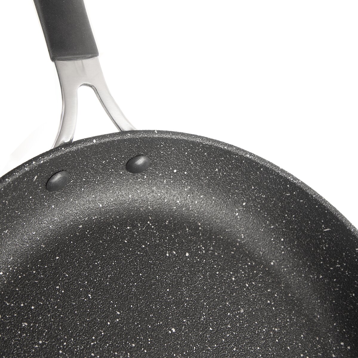Komfortnú manipuláciu zaisťuje dobre vyvážená nerezová rukoväť, pevne prinitovaná k telu panvice. Rukoväť je vybavená príjemným silikónovým poťahom, ten zamedzí vykĺznutiu panvice z ruky.