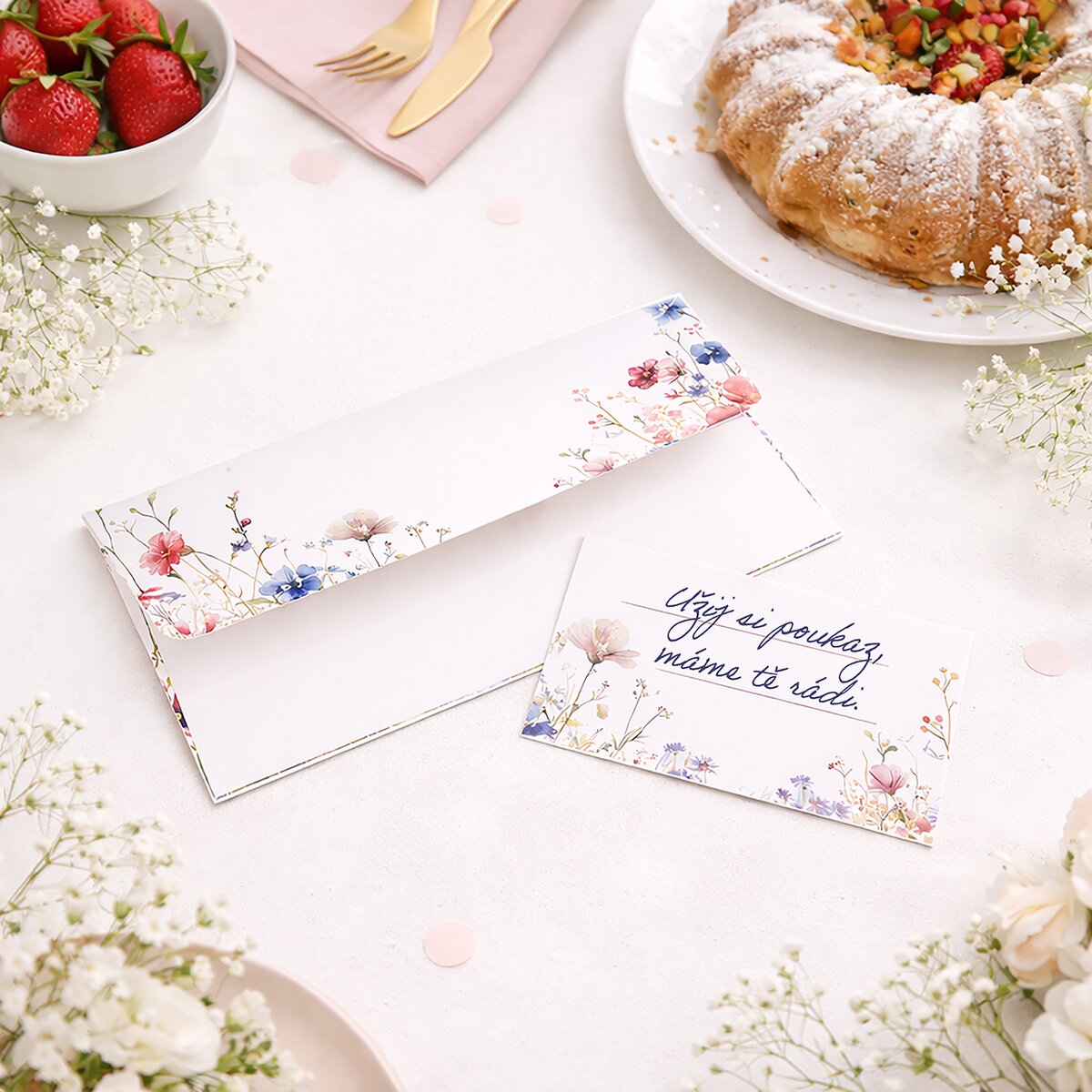 Papierová obálka kvety s vloženou kartičkou