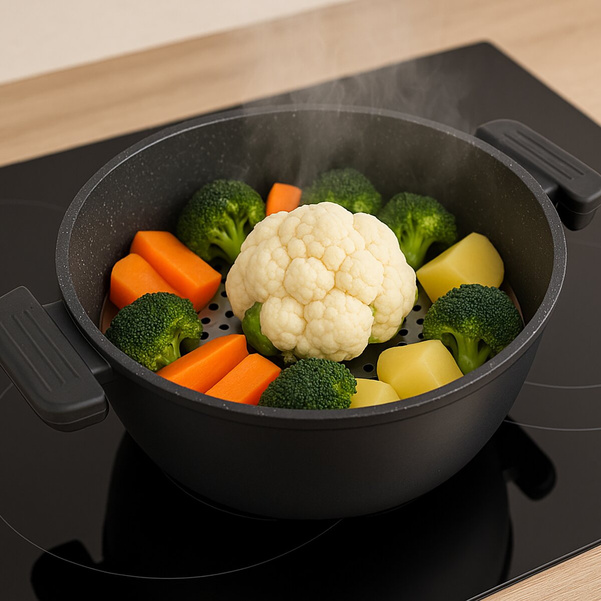 - ideálna na prípravu zeleniny, ako je brokolica, karfiol alebo mrkva – zelenina si zachová svoju farbu, chuť i cenné výživové látky