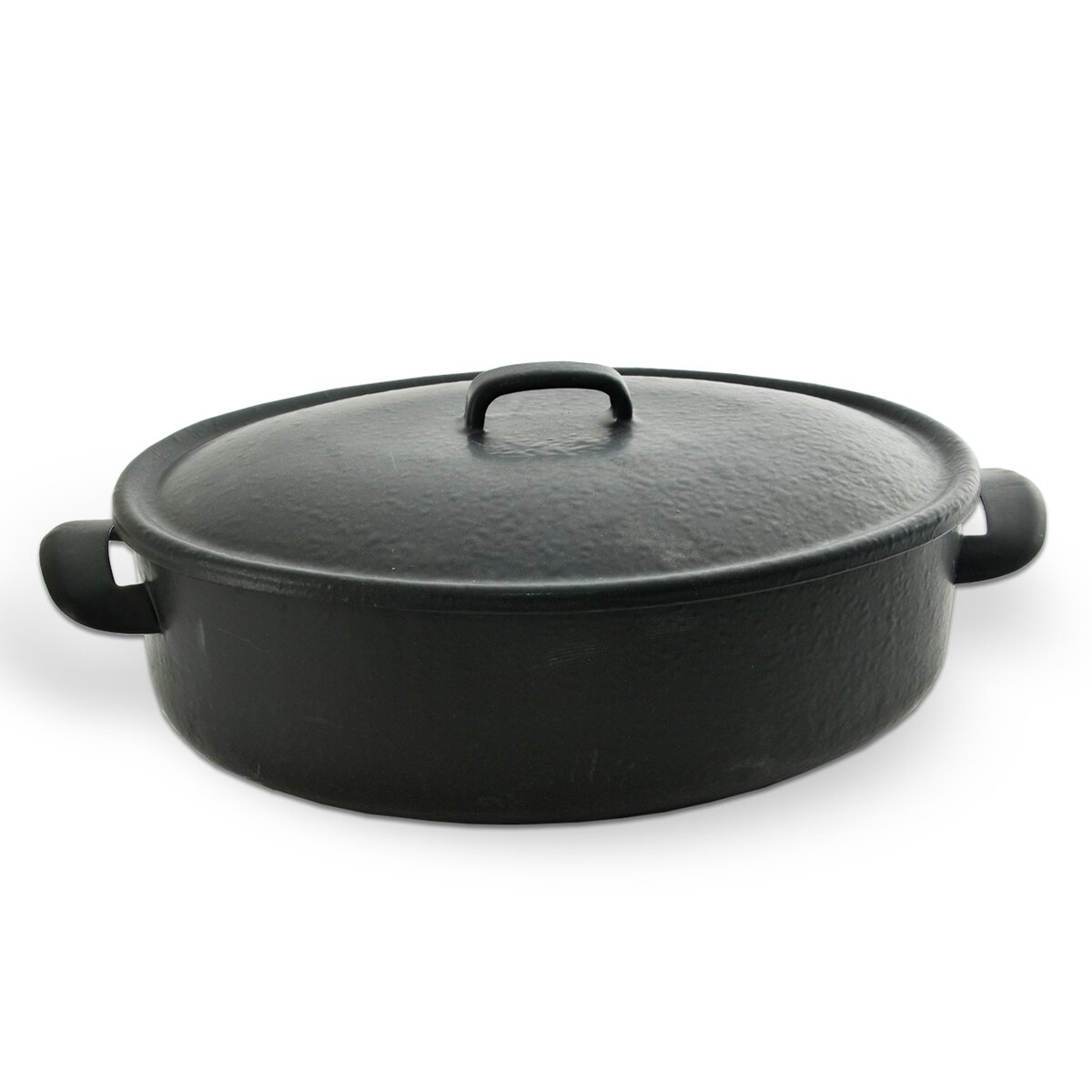 Oceľový základ je pokrytý smaltom, čo je tavenina podobná sklu a vytvorí tak odolný, úplne zdravotne nezávadný povrch. Z vonkajšej strany je matný plastický povrch, s viditeľnými stopami po otere. Po pár použitiach sa zatiahne a získa klasickú, tmavo čiernu farbu. Vo vnútri je aplikovaný špeciálny modrý smalt, ktorý má výborné kyselinovzdorné vlastnosti a zostáva pri bežnom používaní roky prakticky nedotknutý. Vnútorný rozmer pekáča je 33x25 cm, výška 10,5 cm bez pokrievky.