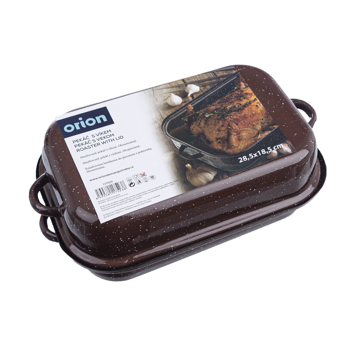 Kód produktu 127020Smaltovaný pekáč s poklopom a ušami, v celkovej dĺžke 31,5 cm, vhodný na pečenie sladkých aj slaných dobrôt v rúre. Veko je možné použiť ako samostatnú nádobu.