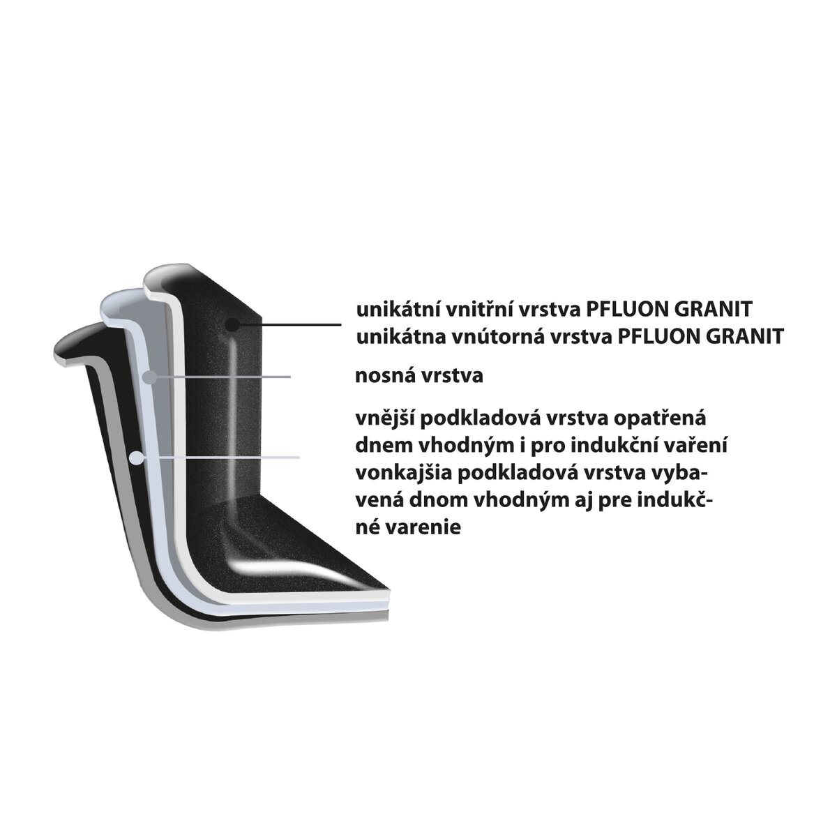 - vyrobené zo zliatiny hliníka potiahnutého veľmi kvalitným antiadhéznym povrchom PFLUON GRANIT