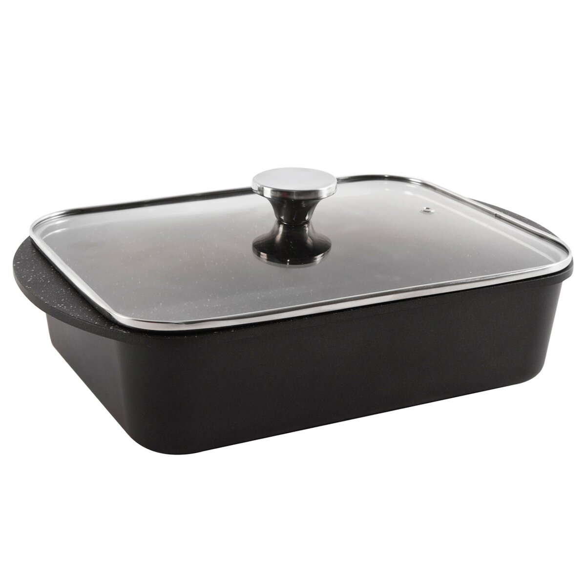 Odlievaný masívny pekáč je opatrený sklenenou pokrievkou s nerezovým lemom a otvorom pre únik prebytočnej pary, budete tak mať prehľad nad stavom pripravovaného pokrmu.