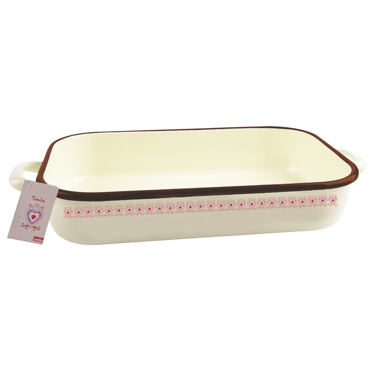 Kód produktu 123789Krásny krémový smaltovaný pekáč s ľudovým dekorom TONČA v celkovej dĺžke 37,5 cm, vhodný na pečenie sladkých aj slaných dobrôt v rúre. Vhodný aj do umývačky.