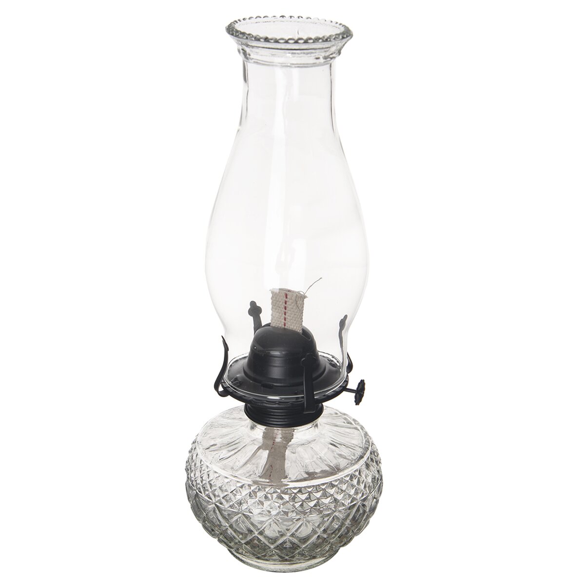 Kód produktu 822259Petrolejová lampa so skleneným telom, klasickým cylindrom s dekoratívnou hornou časťou a bavlneným knôtom slúži po naplnení petrolejom alebo lampovým olejom ako doplnkové svetlo v interiéri.