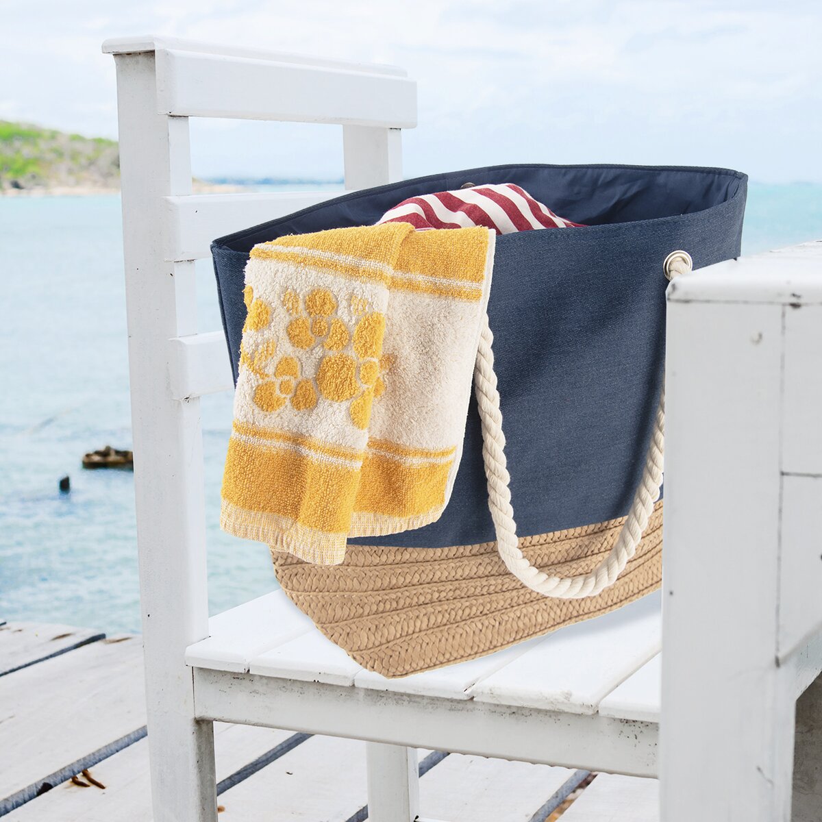 Kód produktu 731426Plážová taška z bavlny, papierovej slamy a polyesteru sa hodí nielen k vode, ale aj na nákup v obchode alebo na trhu. Pre pohodlné nosenie je vybavená dvoma uchami.