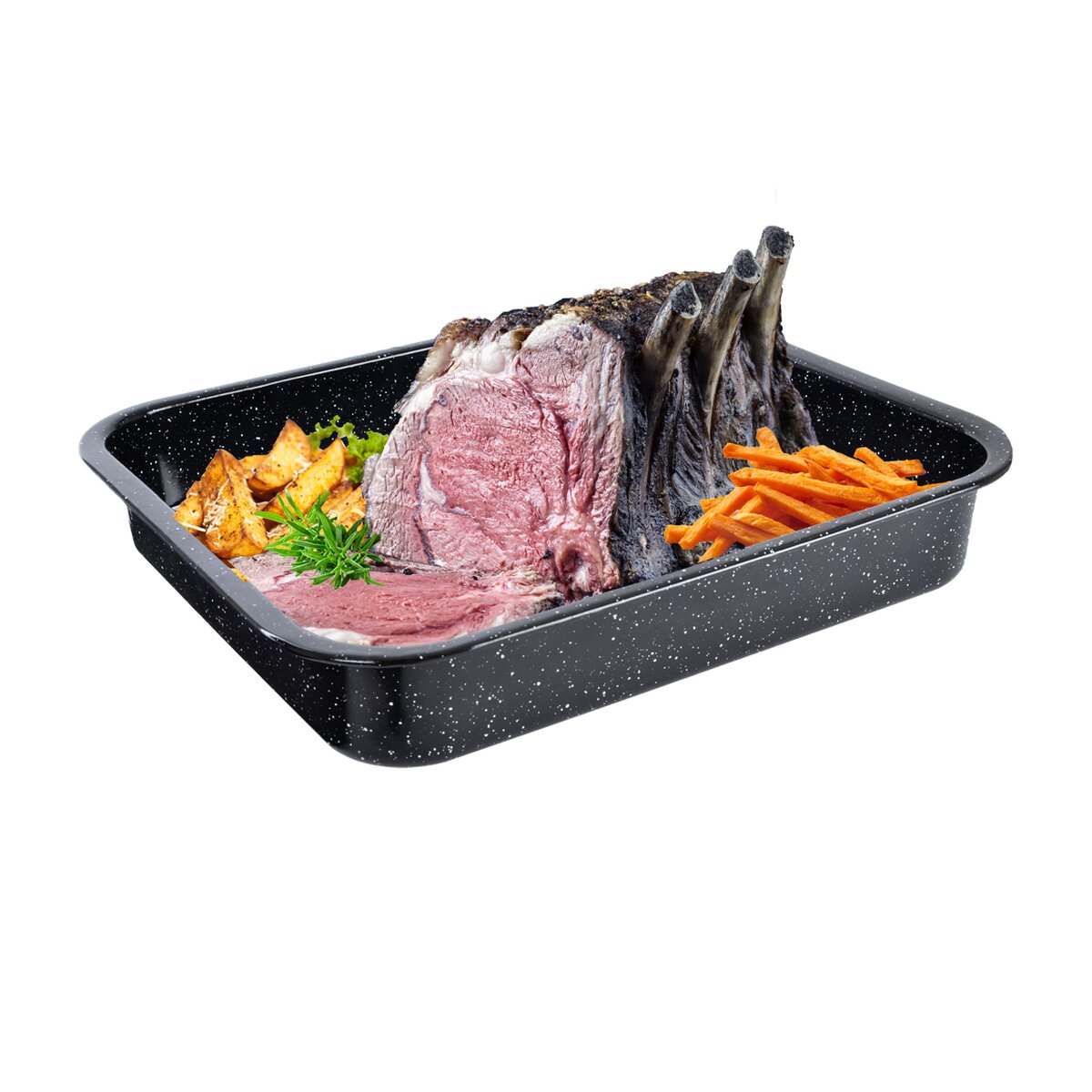 Kód produktu 123753Menší stredne vysoký smaltovaný plech veľkosti 35,5x24 cm do rúry na pečenie sladkých a slaných pokrmov, zapekanie alebo sušenie, možnosť umývať v umývačke riadu.