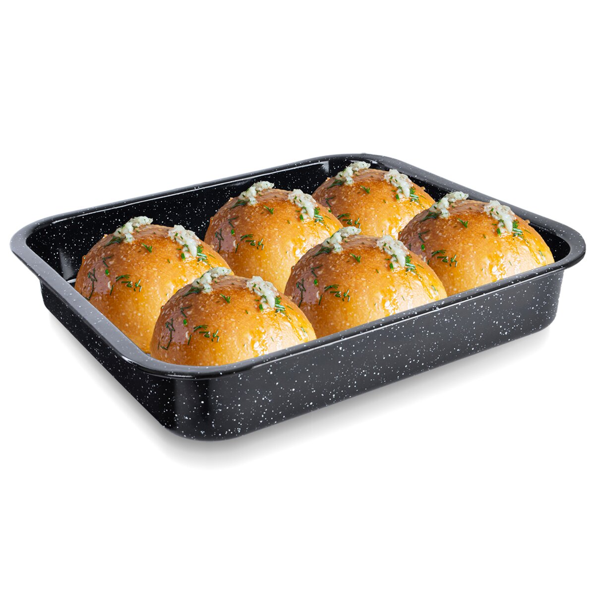 Kód produktu 123750Vysoký smaltovaný plech veľkosti 41,5x36,5 cm do rúry na pečenie sladkých a slaných pokrmov, zapekanie alebo sušenie, možnosť umývať v umývačke riadu.