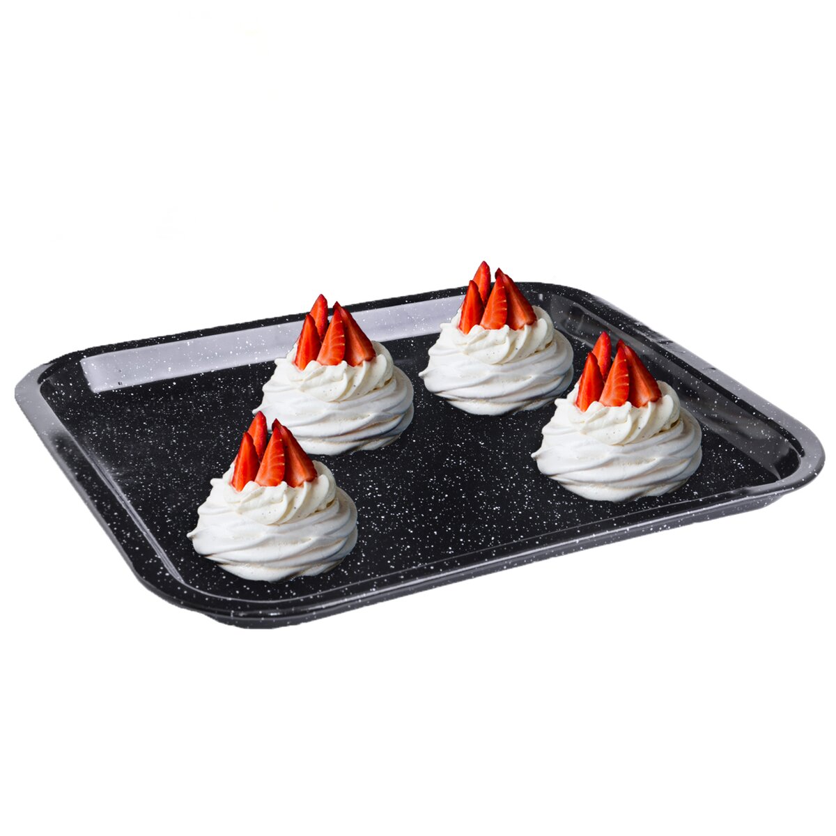 Kód produktu 123746Nízky smaltovaný plech veľkosti 42x37 cm do rúry na pečenie sladkých a slaných pokrmov, zapekanie alebo sušenie, možnosť umývať v umývačke riadu.