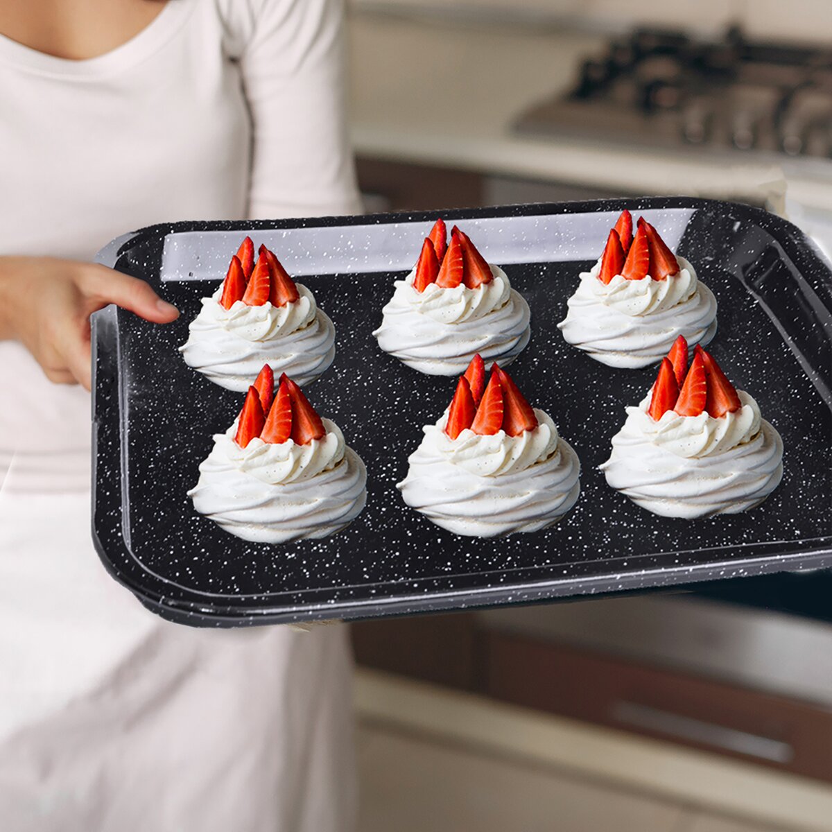 Viac informáciíPrípravu mäsa, zapekaných zemiakov, cestovín, domácej pizze, ale aj sladkých pokrmov, koláčov, kysnutých buchiet či bublaniny si bez kvalitného plechu nedokáže nikto predstaviť. Tento nižší plech je ideálny aj k pečeniu veľkonočného alebo vianočného pečiva a obľúbených sušienok. Vaše výtvory tak budú obzvlášť upečené.