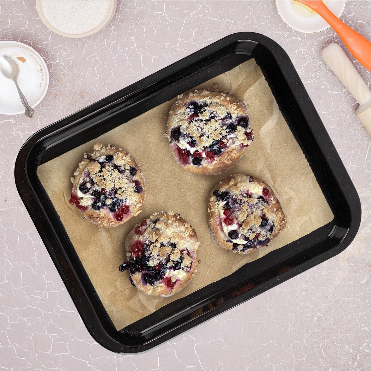 Viac informáciíPrípravu mäsa, domáceho pečiva, pizze, ale aj závinov, koláčov a buchiet si bez kvalitného plechu nedokáže nikto predstaviť. Nižší plech je ideálny aj na pečenie koláčov, perníčkov a drobných sušienok.