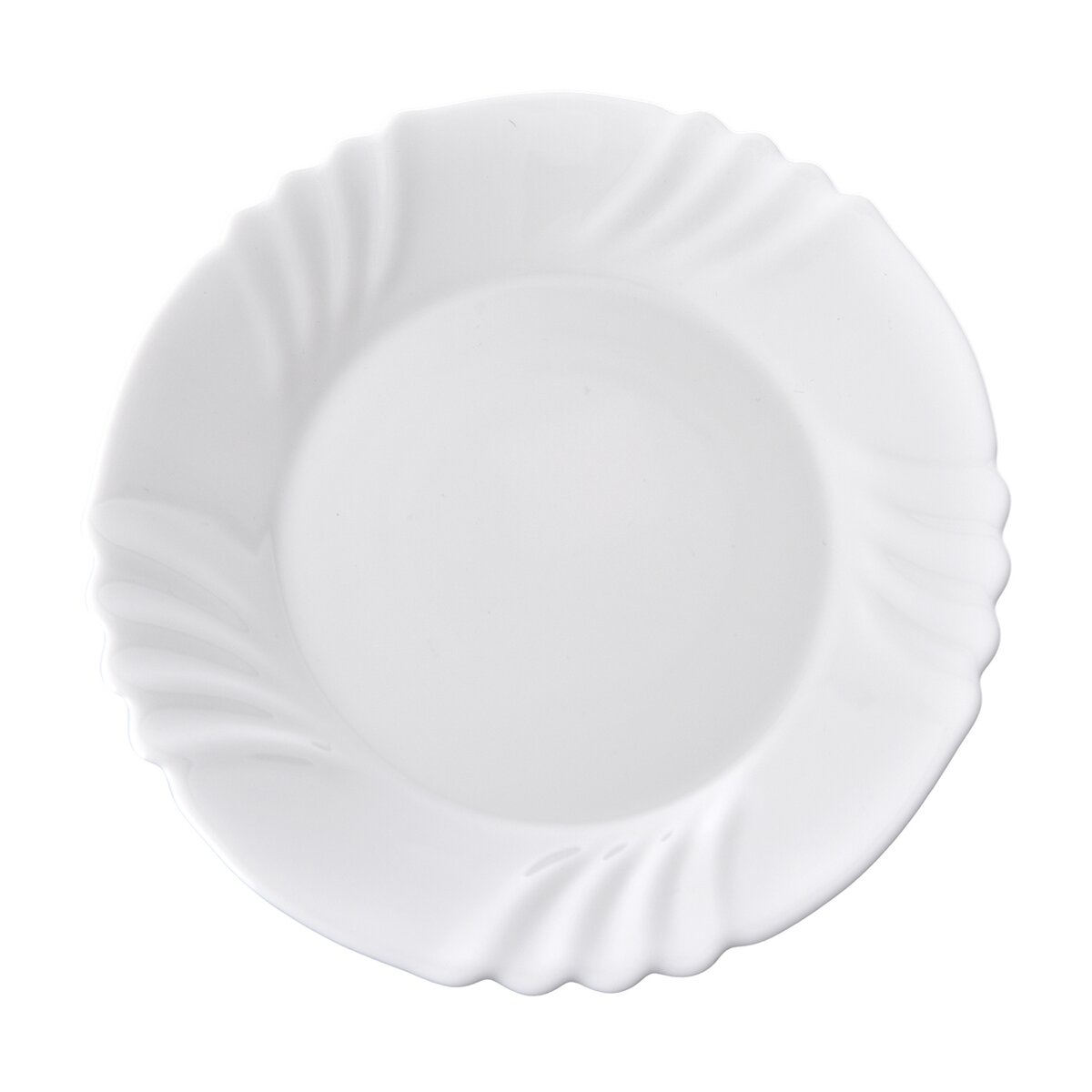 Kód produktu 128316Plytký biely tanier LUNA VLNKY s priemerom 25 cm, vyrobený z opálového skla.