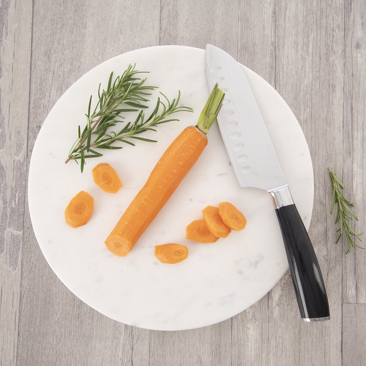 Okrúhla mramorová podložka vo svetlej farbe ponúka všestranné využitie. Ozdobí stôl ako praktická podložka pod koreničky a dochucovadlá. Využijete ju aj ako podložku pod teplý hrniec alebo pekáč (max. 70 °C).