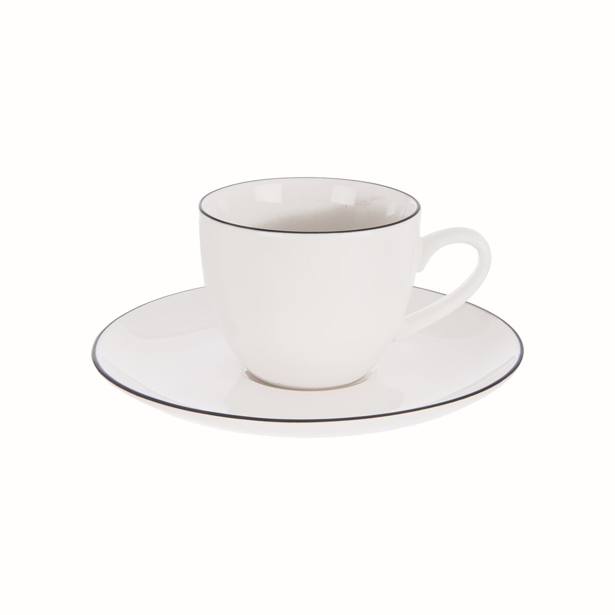 Elegantná porcelánová podšálka má hladký biely povrch a je zdobená jemnou čiernou linkou po okraji, ktorá podčiarkuje jeho vycibrený vzhľad. Je možné ho kombinovať s hrnčekom na espresso. Ideálne je aj na servírovanie múčnika, sušienok alebo drobného dezertu.