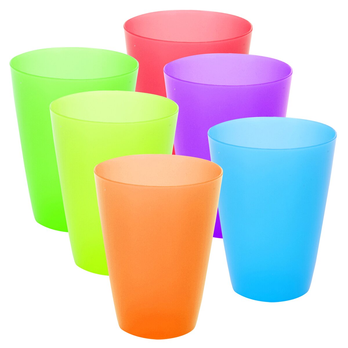 Kód produktu 121756Sada šiestich plastových farebných pohárov v objeme 300 ml.