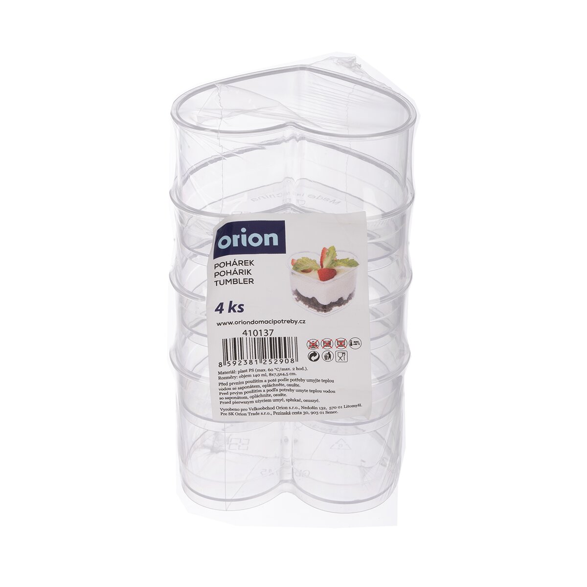 Kód produktu 410137Sada 4 ks transparentných pohárikov v tvare srdca je ako stvorená na chladené sladké dezerty typu Panna cotta, Tiramisu aj slané pochúťky a peny.