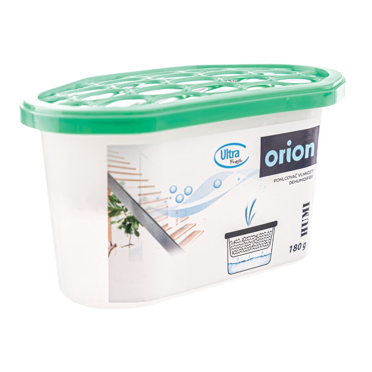 Kód produktu 832335Pohlcovač vlhkosti s objemom nádoby 180 g a s rozmermi 15×8,5×8,5 cm.