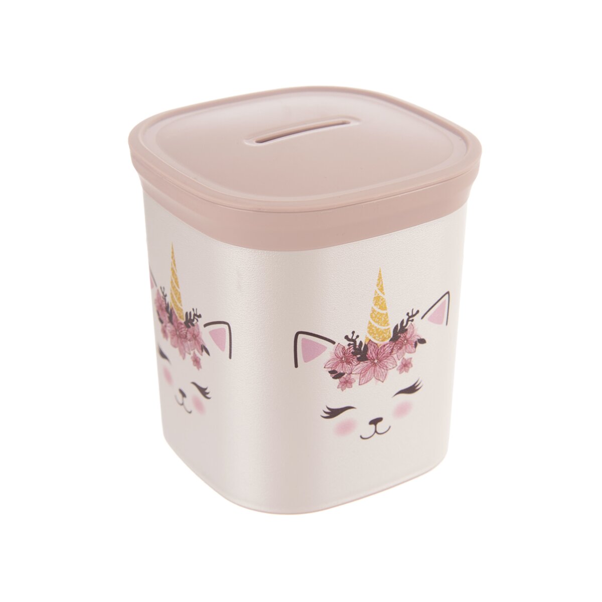 Kód produktu 822901Plastová pokladnička s dekorom jednorožcov a odnímateľným viečkom poslúži na ukladanie hotovosti.