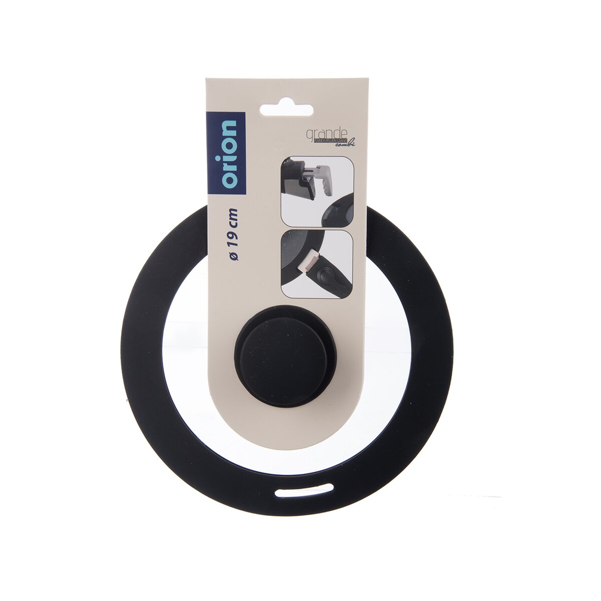 Kód produktu 126334Sklenená pokrievka so silikónovým lemom a úchytom v celkovom priemere 19 cm je doplnená otvorom na únik pary a výrezom na odnímateľnú rukoväť.
