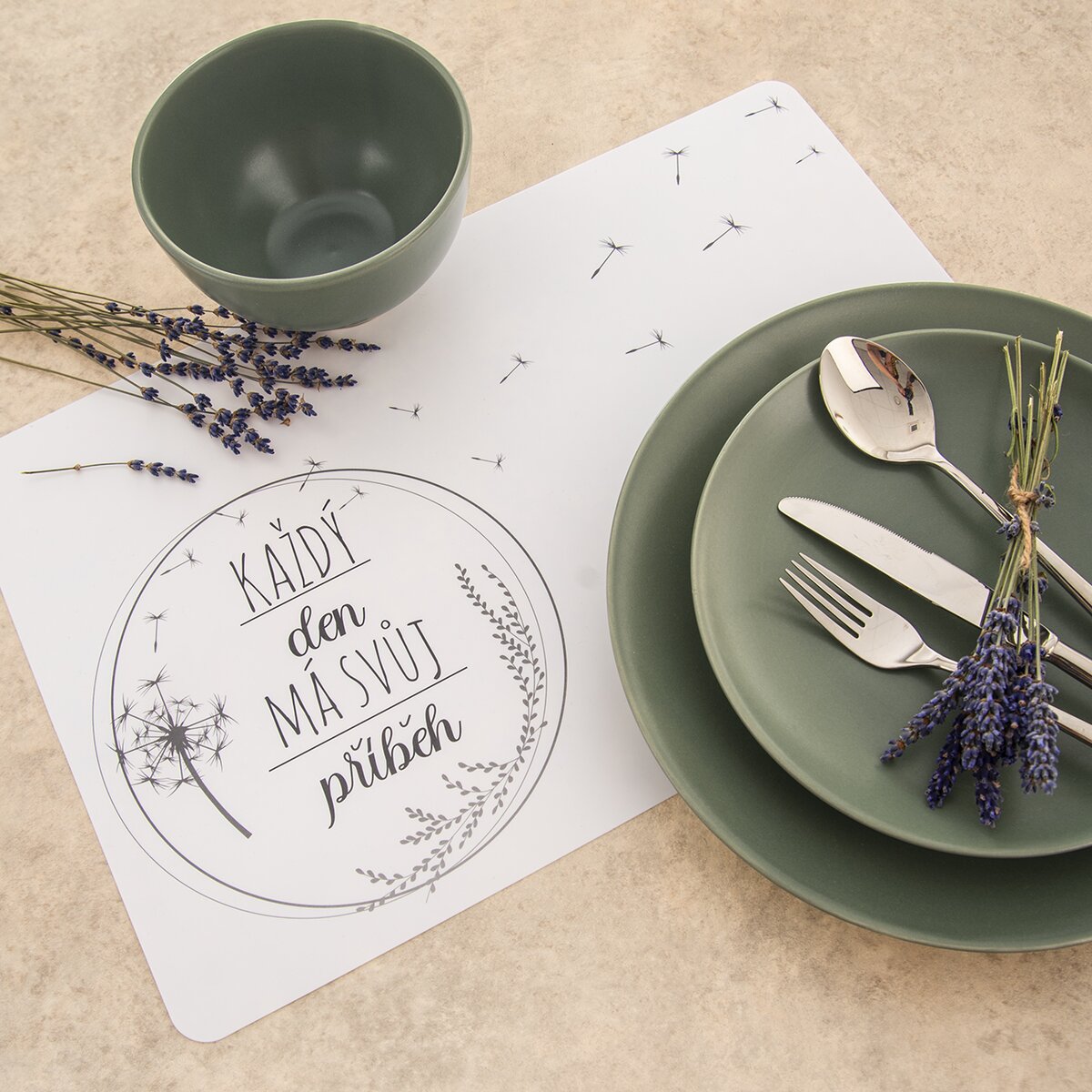 Kód produktu 728025Jemné prestieranie KAŽDÝ DEN s nostalgickým motívom a nápisom navodí príjemnú pohodu pri stolovaní doma aj na záhrade a ochráni stôl pred poškodením a zašpinením.