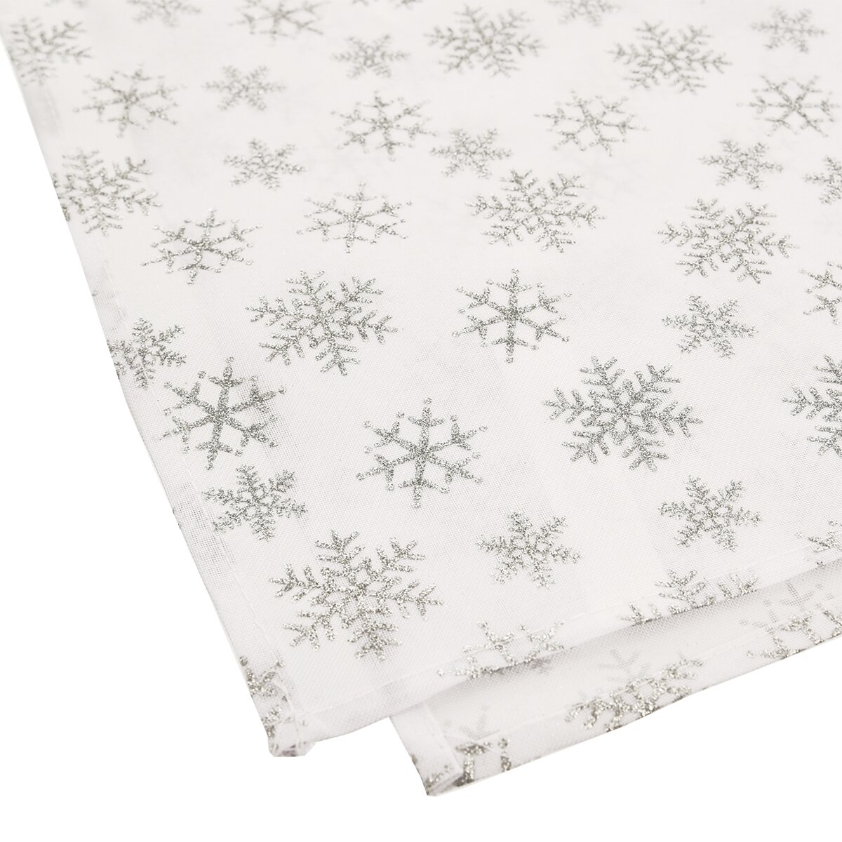 Kód produktu 728002Sada 2 kusov bieleho polyesterového prestierania s dekorom strieborných vločiek, ktoré využijete predovšetkým v dobe adventu a Vianoc.