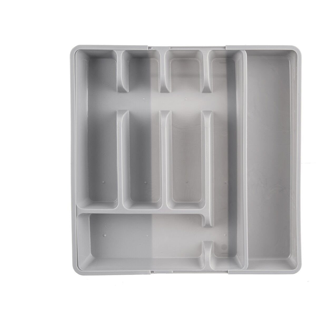 Kód produktu 150749Šedý plastový príborník má veľkosť 27,5/44x36,5x4,3 cm. Je rozdelený na 5 základných sekcií, navyše s dvoma ďalšími sekciami, ktoré je možné vysunúť do strán.