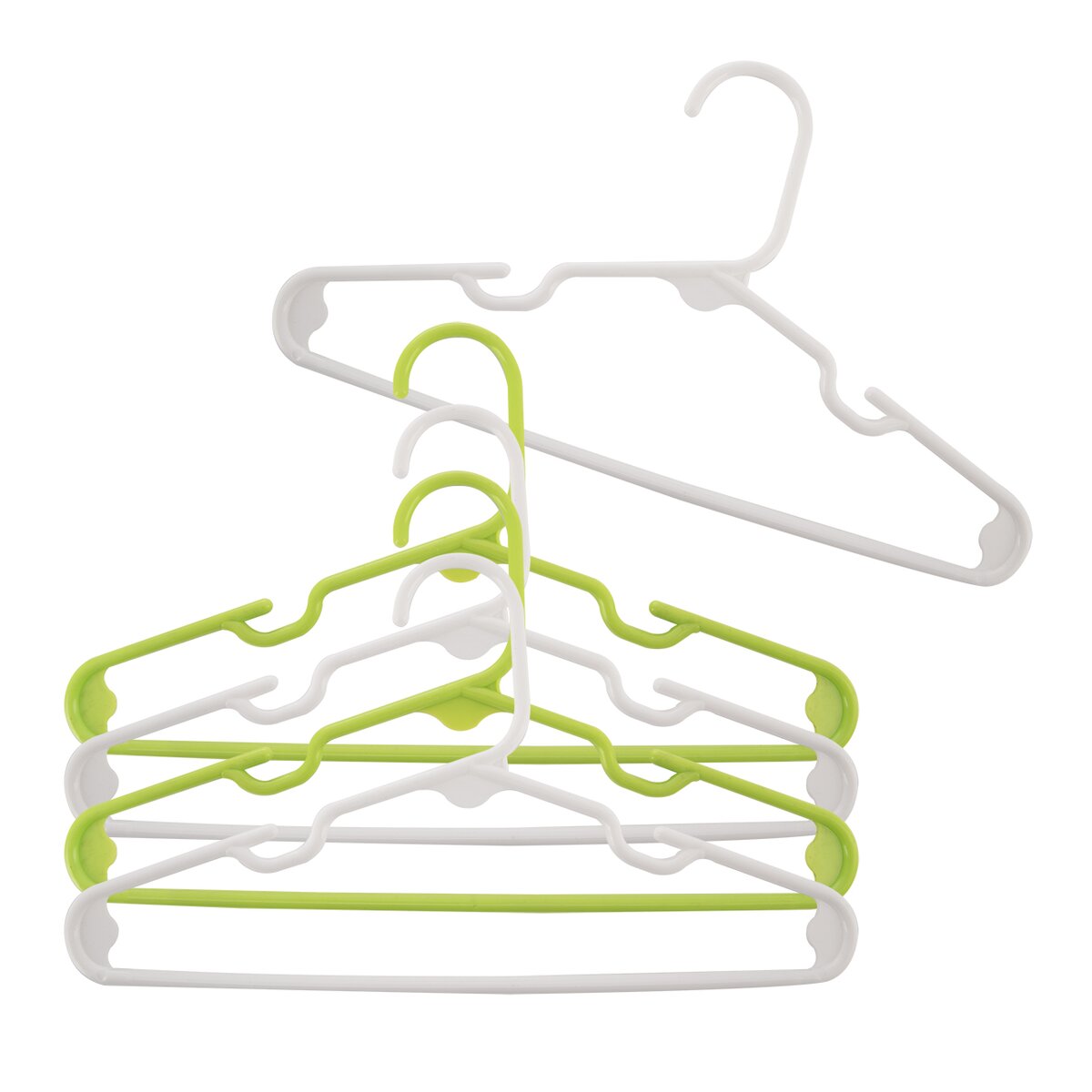 V skrini, v šatni alebo na štendri je vždy dobré mať zásobu ramienok. Tieto malé ramienka sú určené hlavne na usporiadanie detského oblečenia, dievčenských šiat, tričiek, košiel a blúzok. V sade nájdete 3 biele a 2 zelené ramienka z plastu PP, ktoré umožňujú zavesiť za tvarované výstupky aj šaty na úzke ramienka alebo sukne za pútka.
